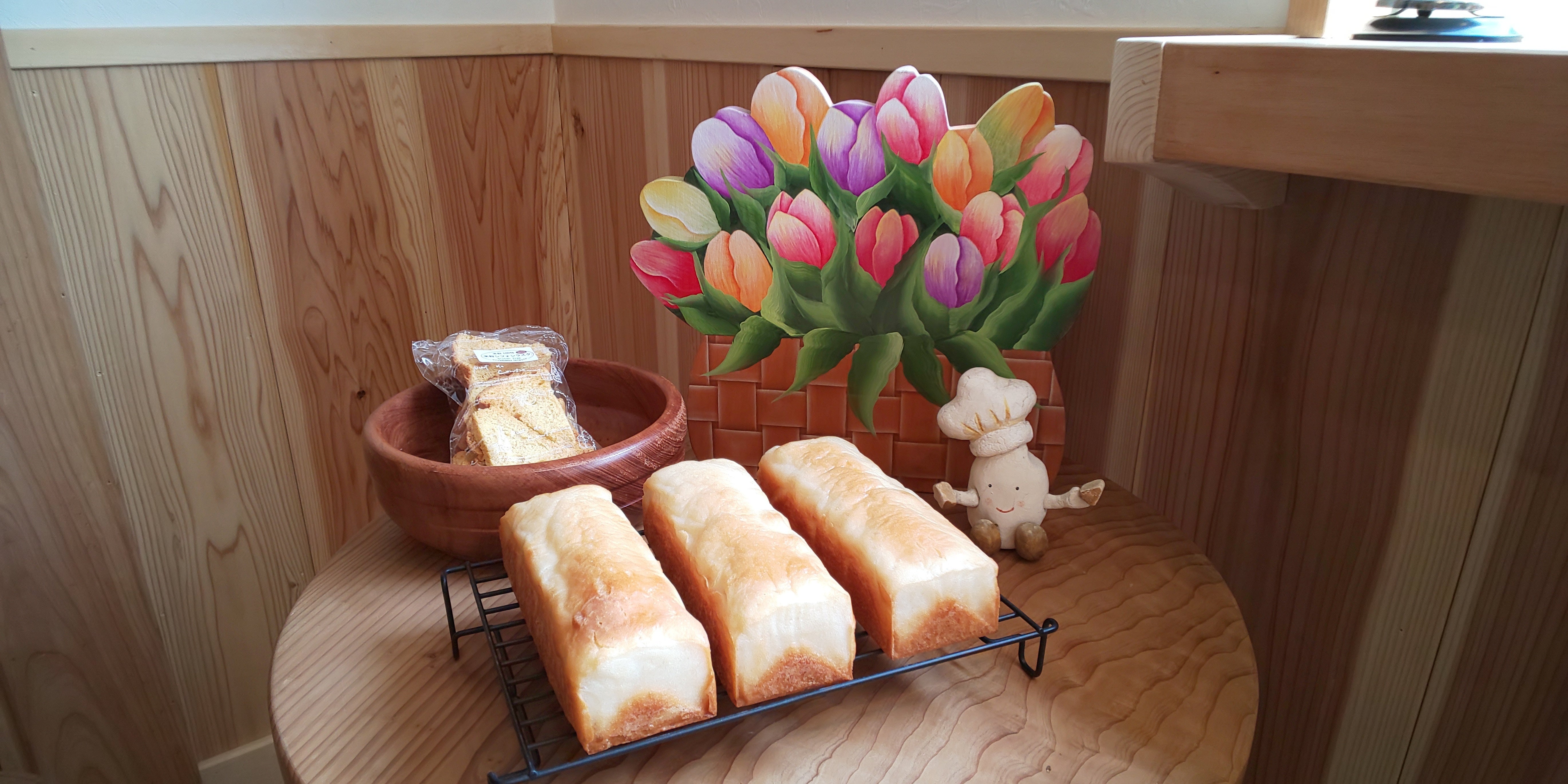 自家精米したての京都府丹後産こしひかりだけで焼くお米パンをお届けします。