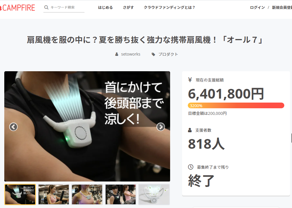 それから出来上がったのが、「髪の毛が絡まない」「服の中に入れても涼しい」ファンを取り外した携帯扇風機ALL7です。