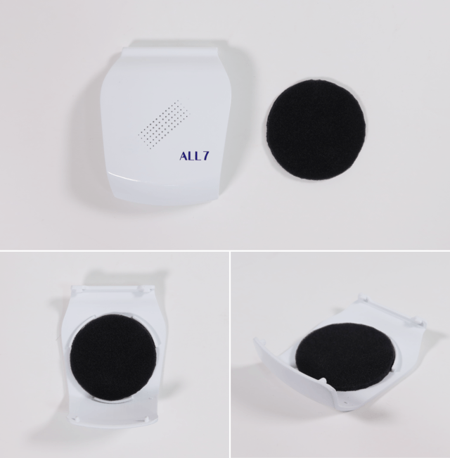 ALL7は空気吸い口が布で塞がっていても風が出せる扇風機です。このようなALL7だけの特徴の活かして空気吸い口にフィルターを装着して空気中に浮遊するホコリや菌、飛沫などをフィルターがしっかりカットします。(フィルターは不織布マスクに使用するフィルターと同等のものです)