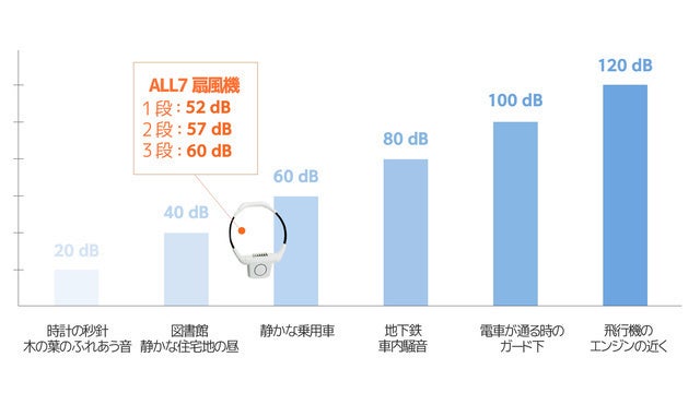 最低52DB~最大60DBの静音で設計されたALL7扇風機で、日常生活にお気軽にお使いいただけます。