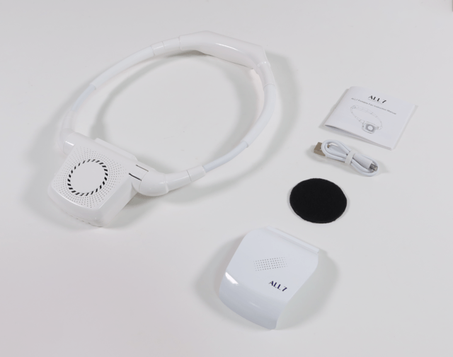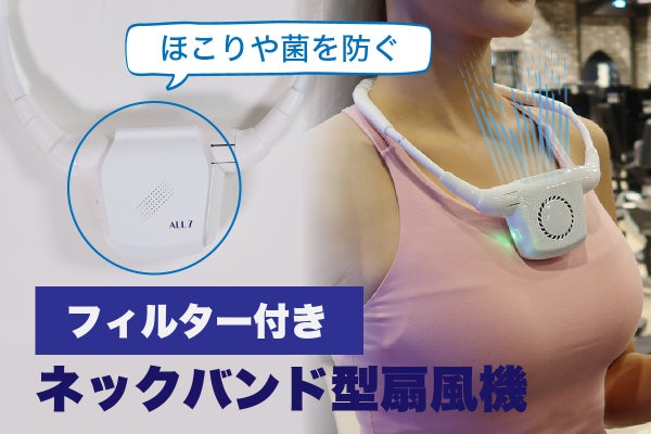 ALL7は、熱くなった体を冷やすのに効果的な部位である「首回り」に密着した状態で風を出すため、より涼しく感じます。首、顔、お腹などお好きなところに身体に密着して風を出すことができます。ALL7は熱中症対策のアイテムとして、高い効果が期待できます。