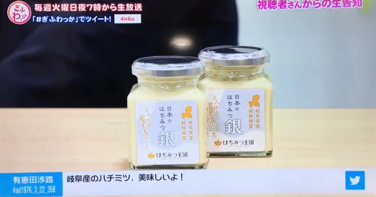 岐阜CCNさんの生放送テレビ番組「ぎふわっか」にてクラウドファンディングの告知をさせていただきました。テレビ出演は初めてでしかも生放送だったので大変緊張していました。MCのお二人やスタッフの方が優しくフォローしてくれたおかげでなんとか無事に終わりました。告知をさせていただきありがとうございました。引き続き白いはちみつを通じて岐阜県の魅力を全国に伝えることができるように頑張りますので今後とも応援をよろしくお願い致します。
