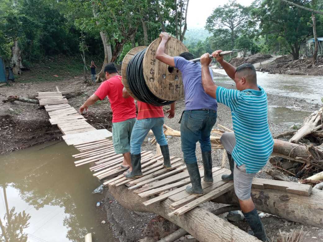 停電の復旧作業に必要な電線を運ぶ地域ボランティア