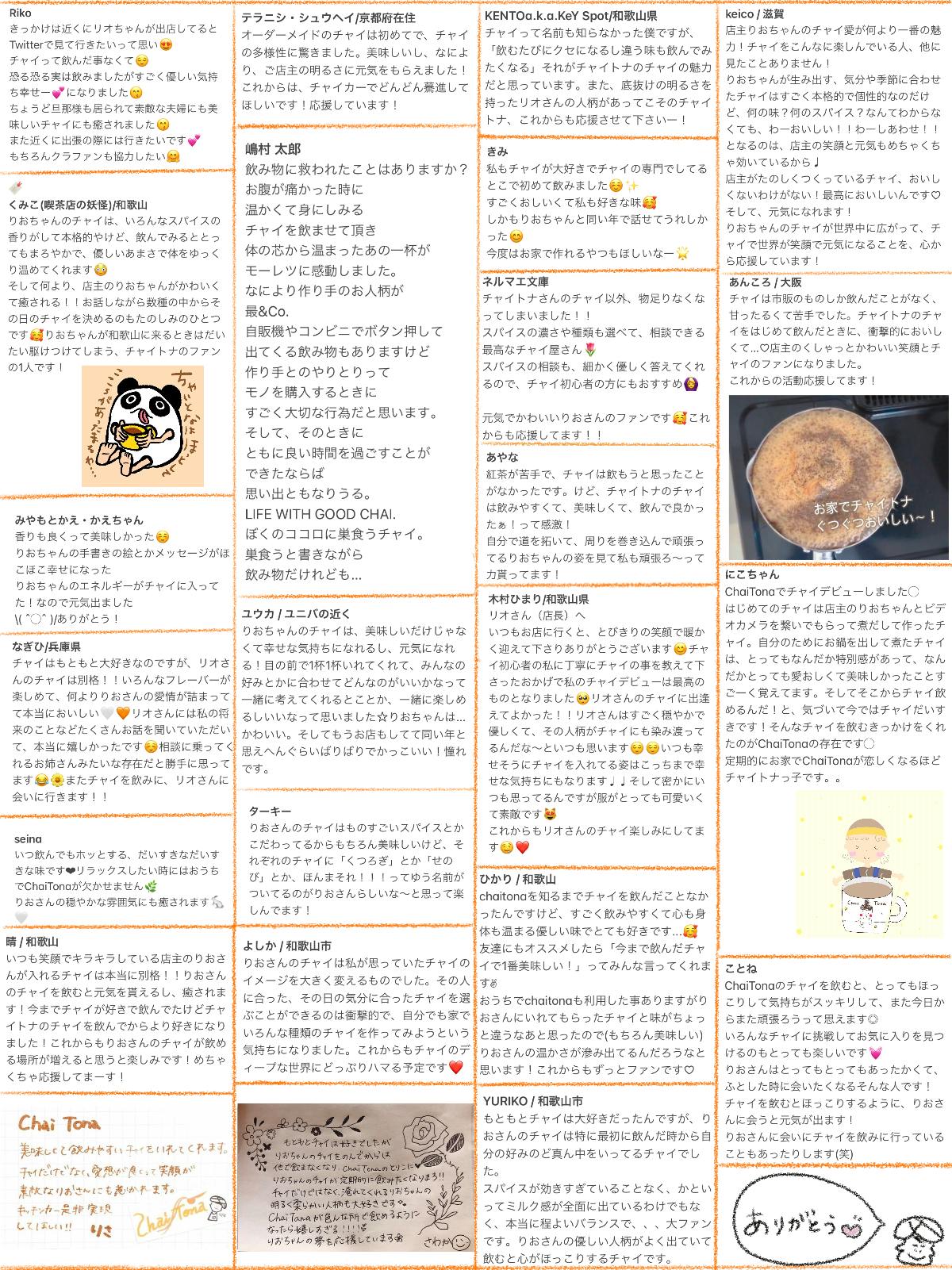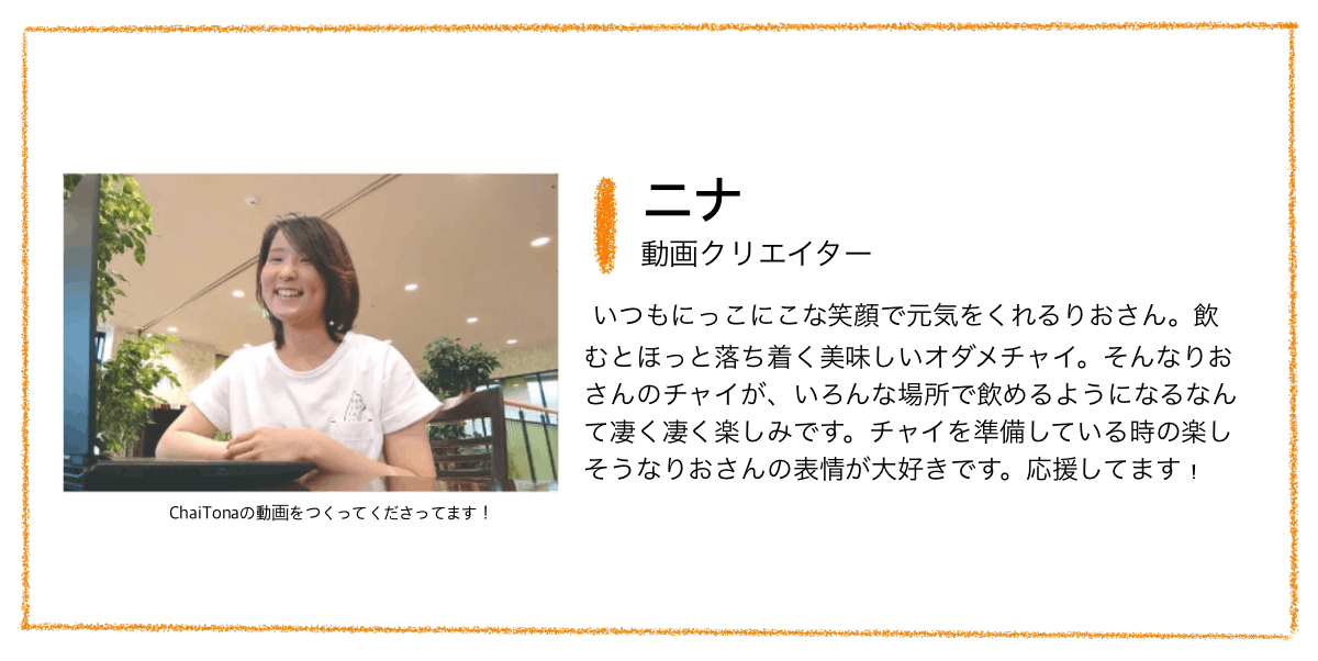 毎日たくさんの方たちに支えられ、応援していただき、ChaiTonaを続けることができています。