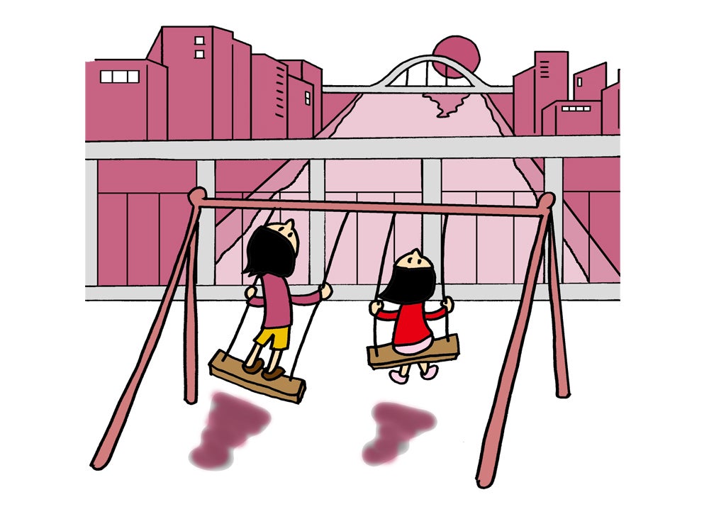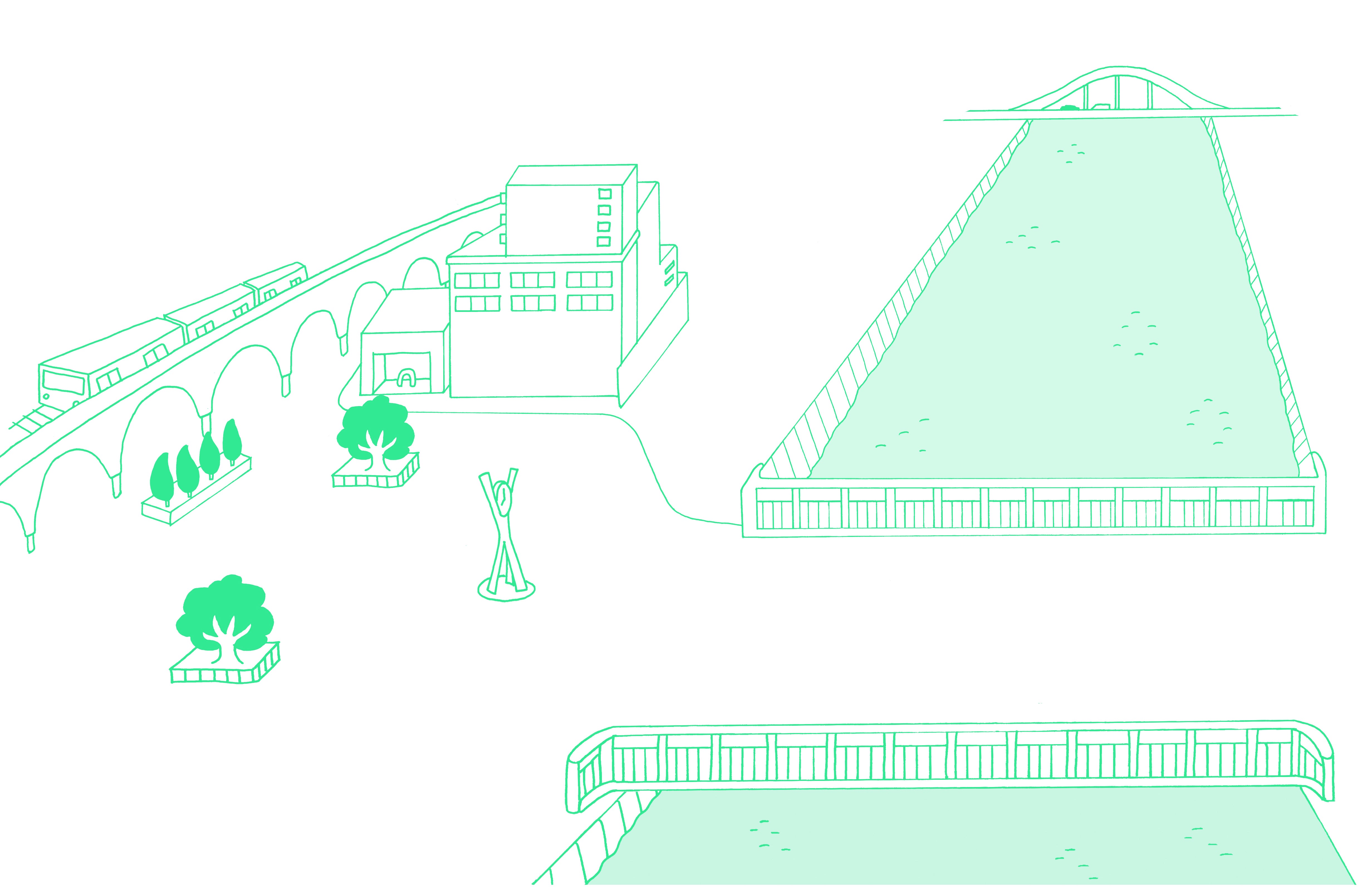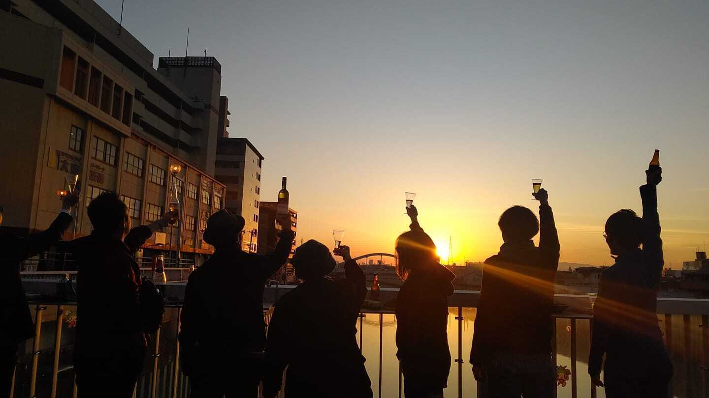 私たちは住道駅前デッキの美しい夕陽に着目しました。住道駅前デッキは堤防の高さにあるのでとても見晴らしがいいんです。