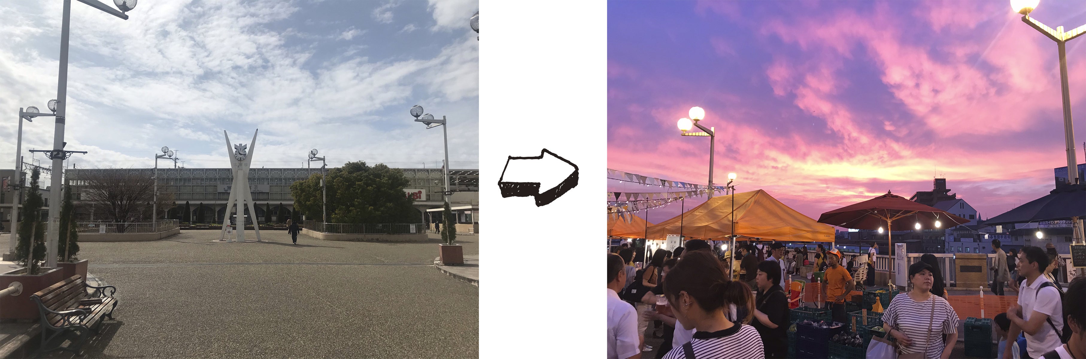 ゆうひズムプロジェクトはガラーンとした駅前広場を、
