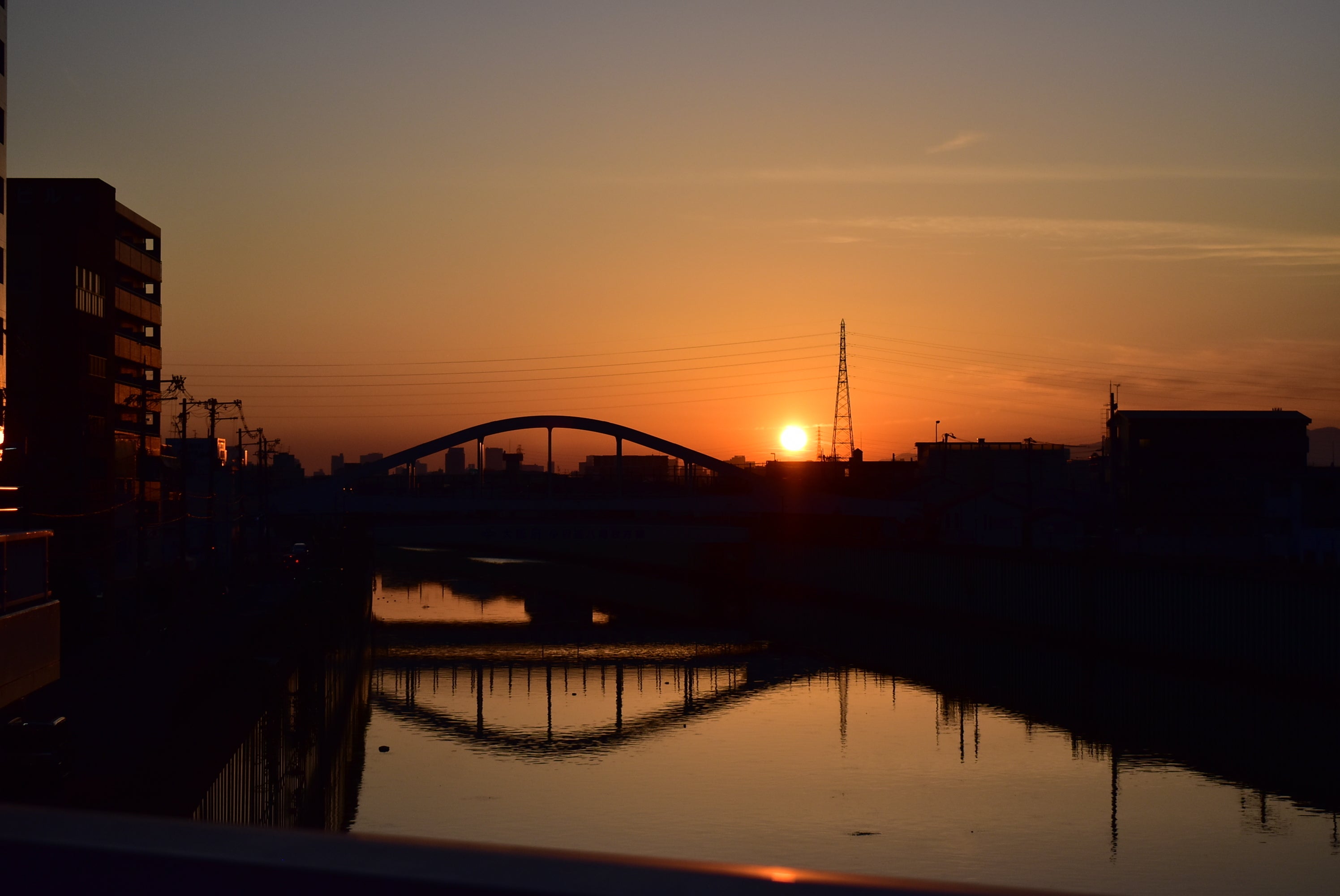 寝屋川に沈む美しい夕陽を見ると、穏やかな気持ちになり、癒されます。