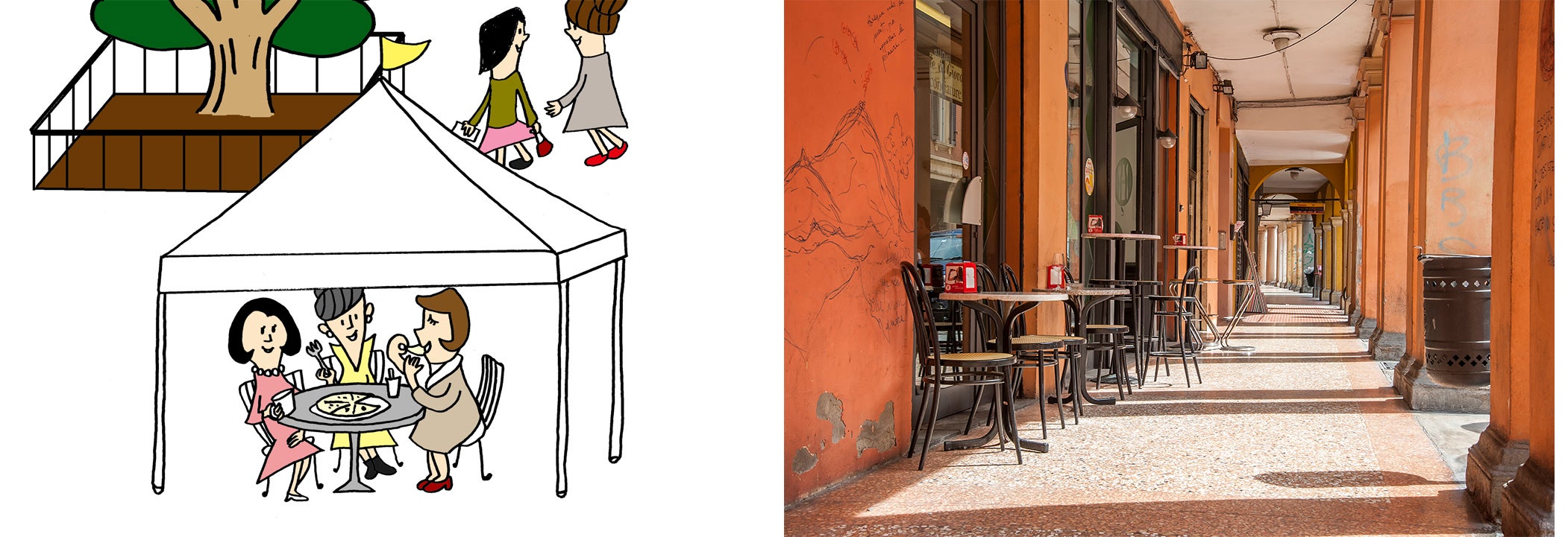 テーブルとイスさえあれば、そこは市民のリビングルーム!密にならないオープンエアだから安心。