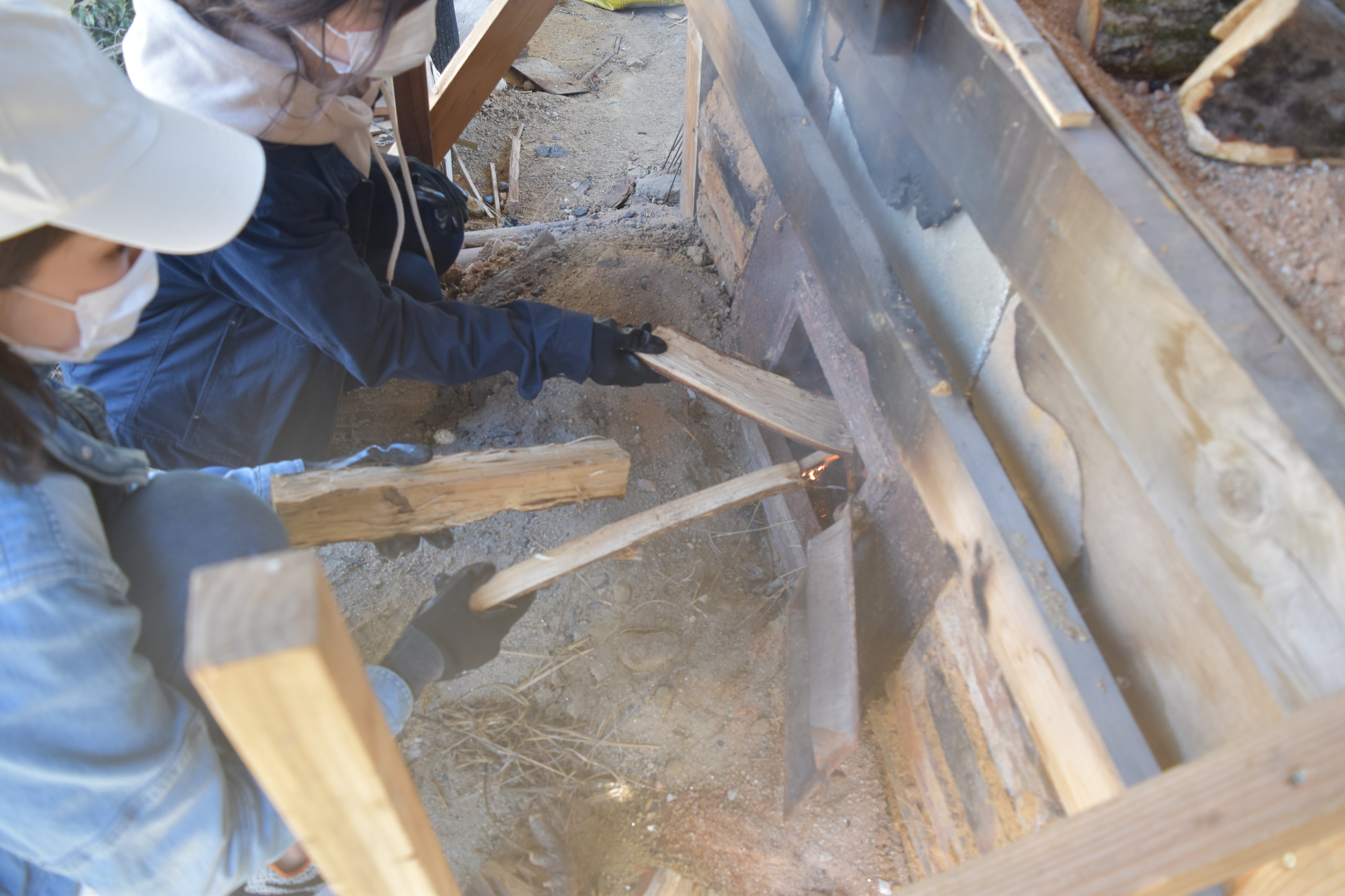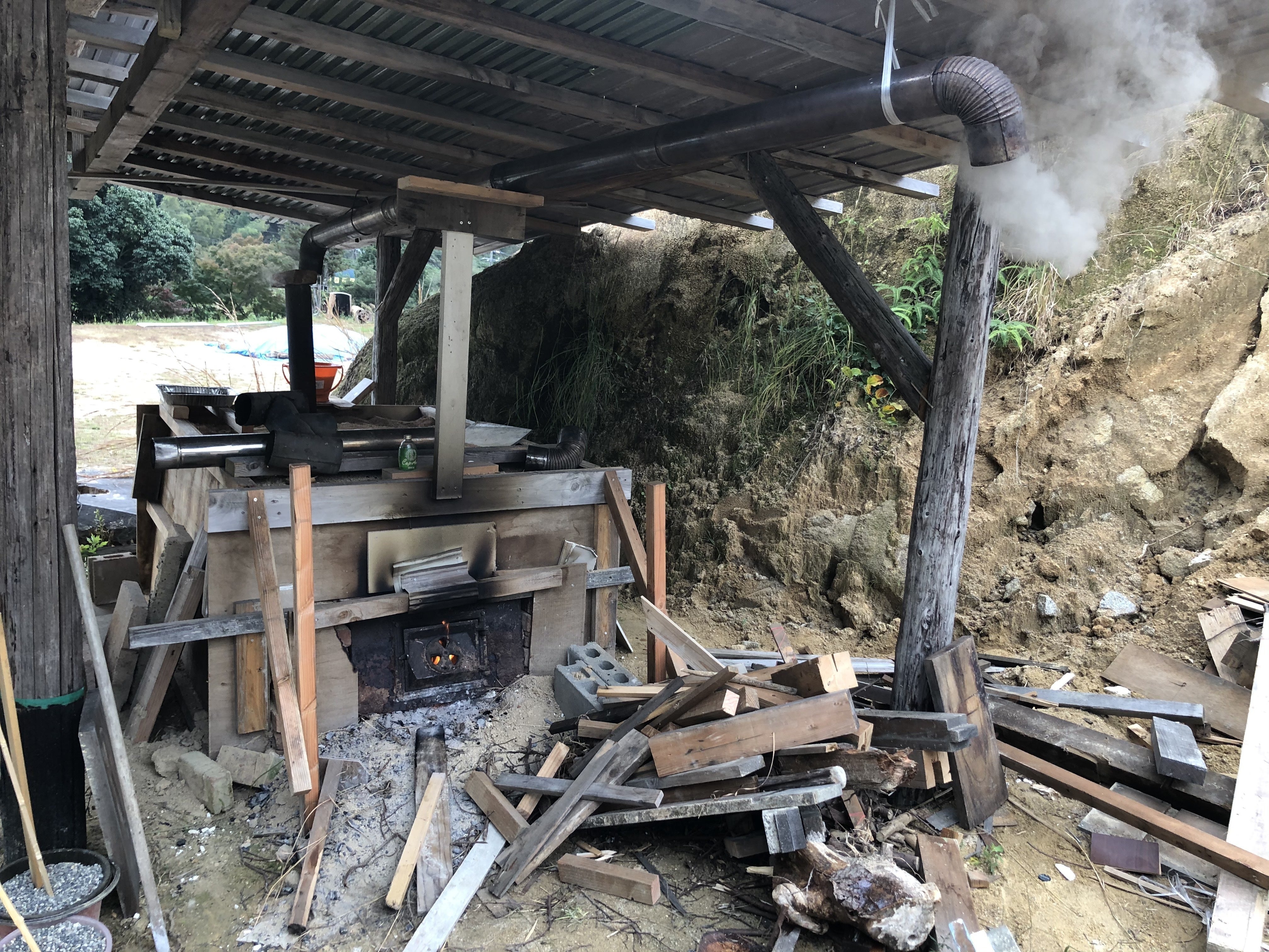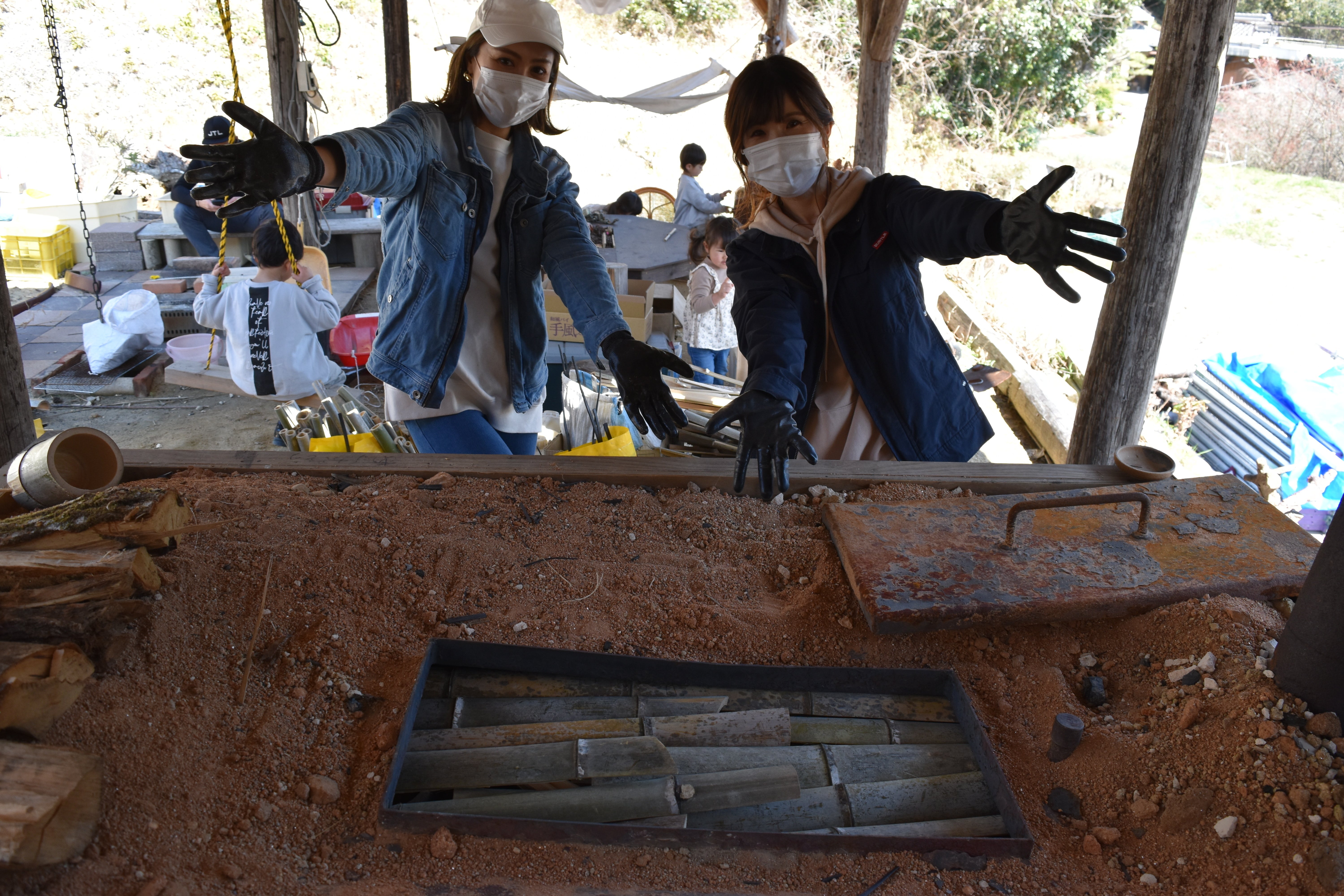 炭窯は、10年前まで知人のお兄さんが竹炭造りをしていた炭窯を発見し、10年ぶりに動き出しました!