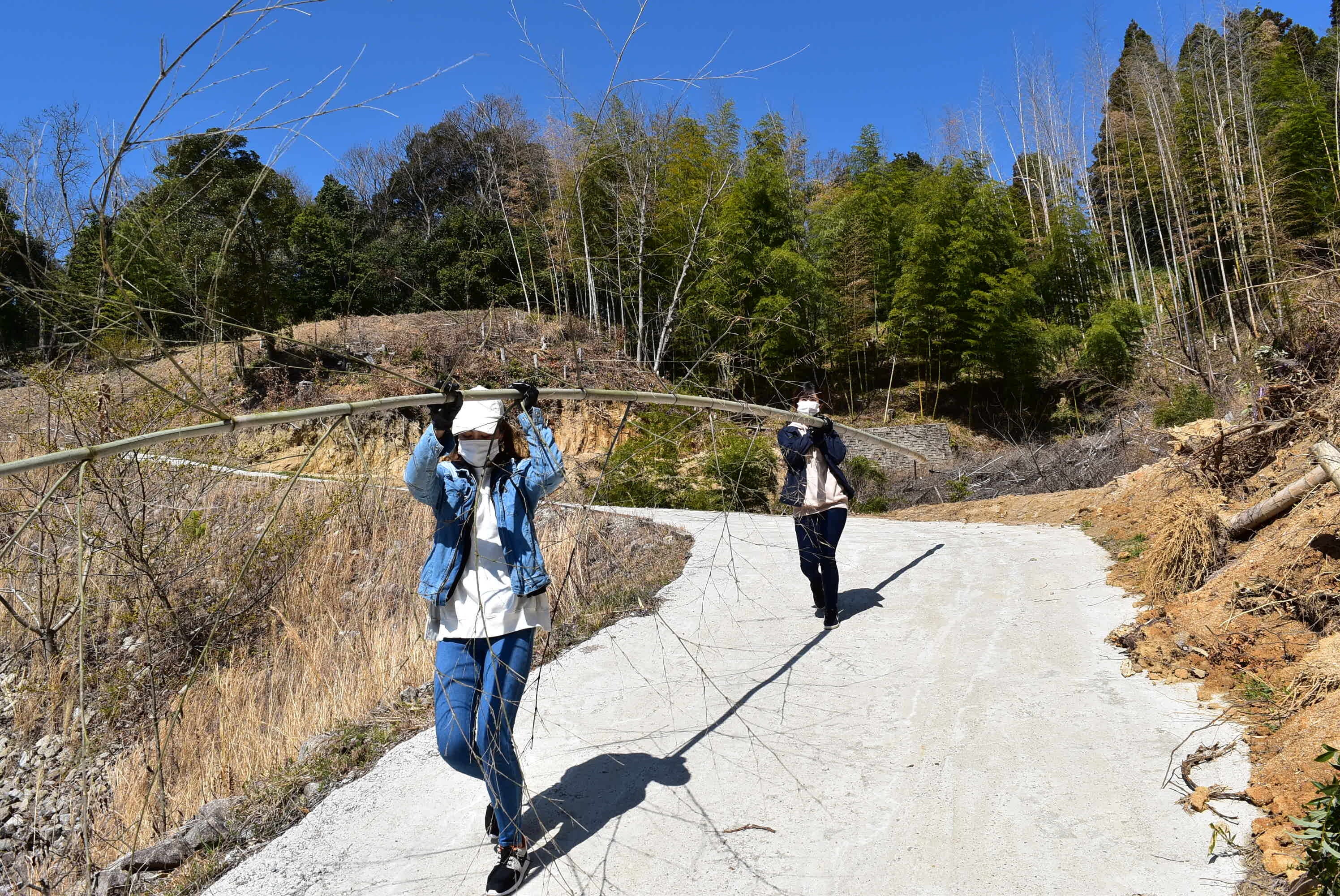 岡崎市周辺では、管理者の減少により土砂災害を誘発する原因になる放置竹林、放置林が増加しております。少しでも安心・安全な生活を過ごせるよう、支援活動の一環で伐採を行い竹炭木炭づくりの材料や炭窯の燃料に「再利用」して山林環境をよくしていきます。