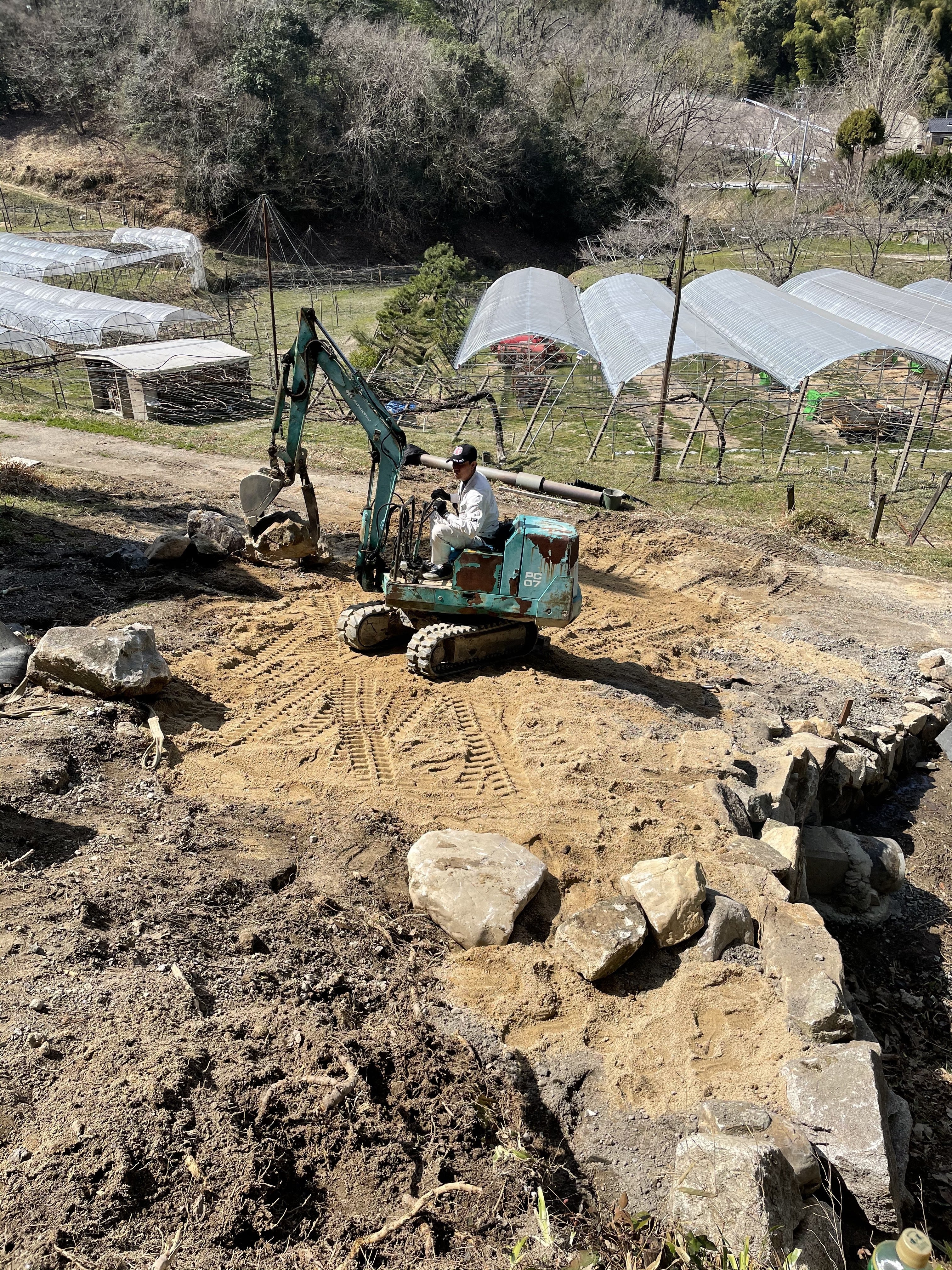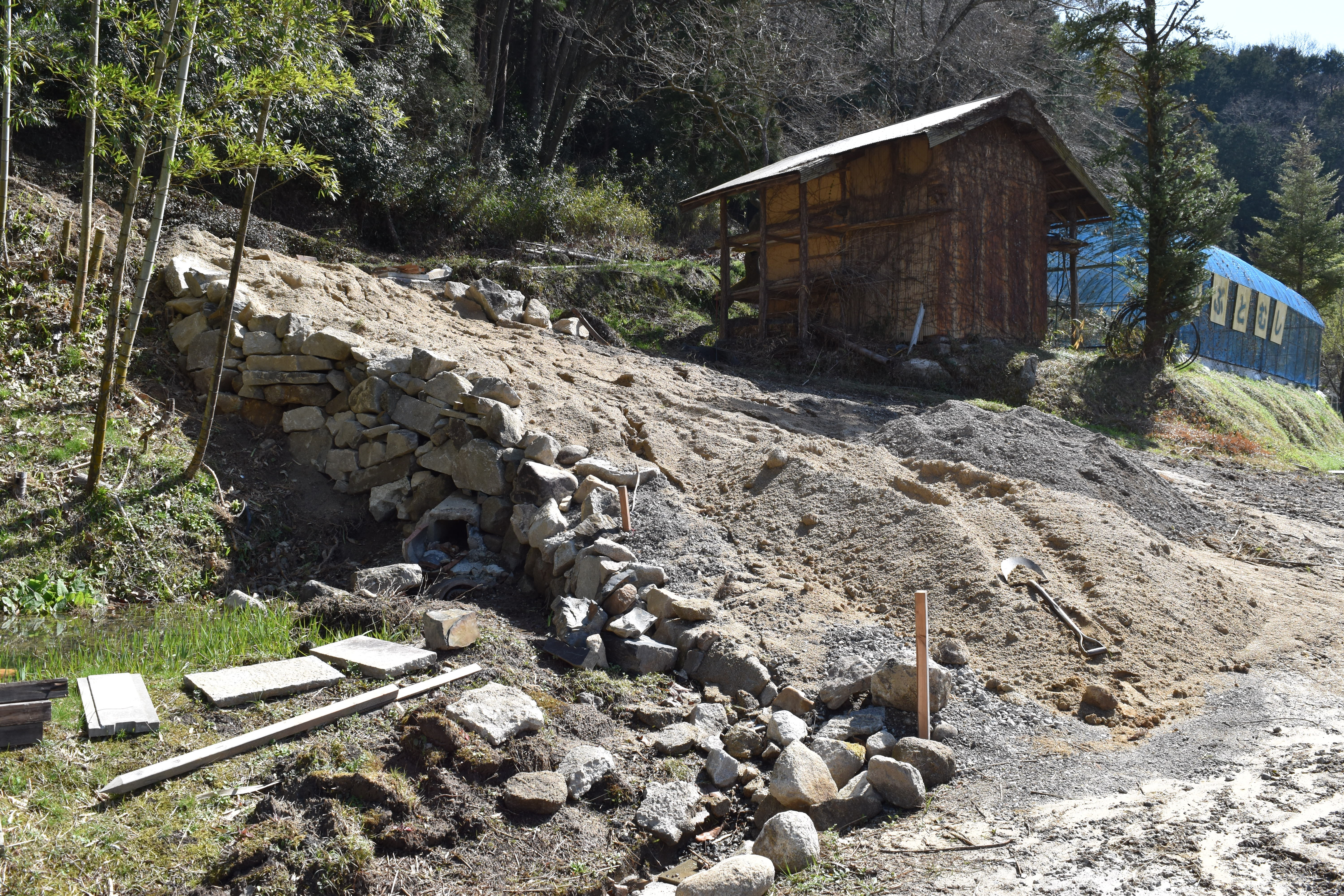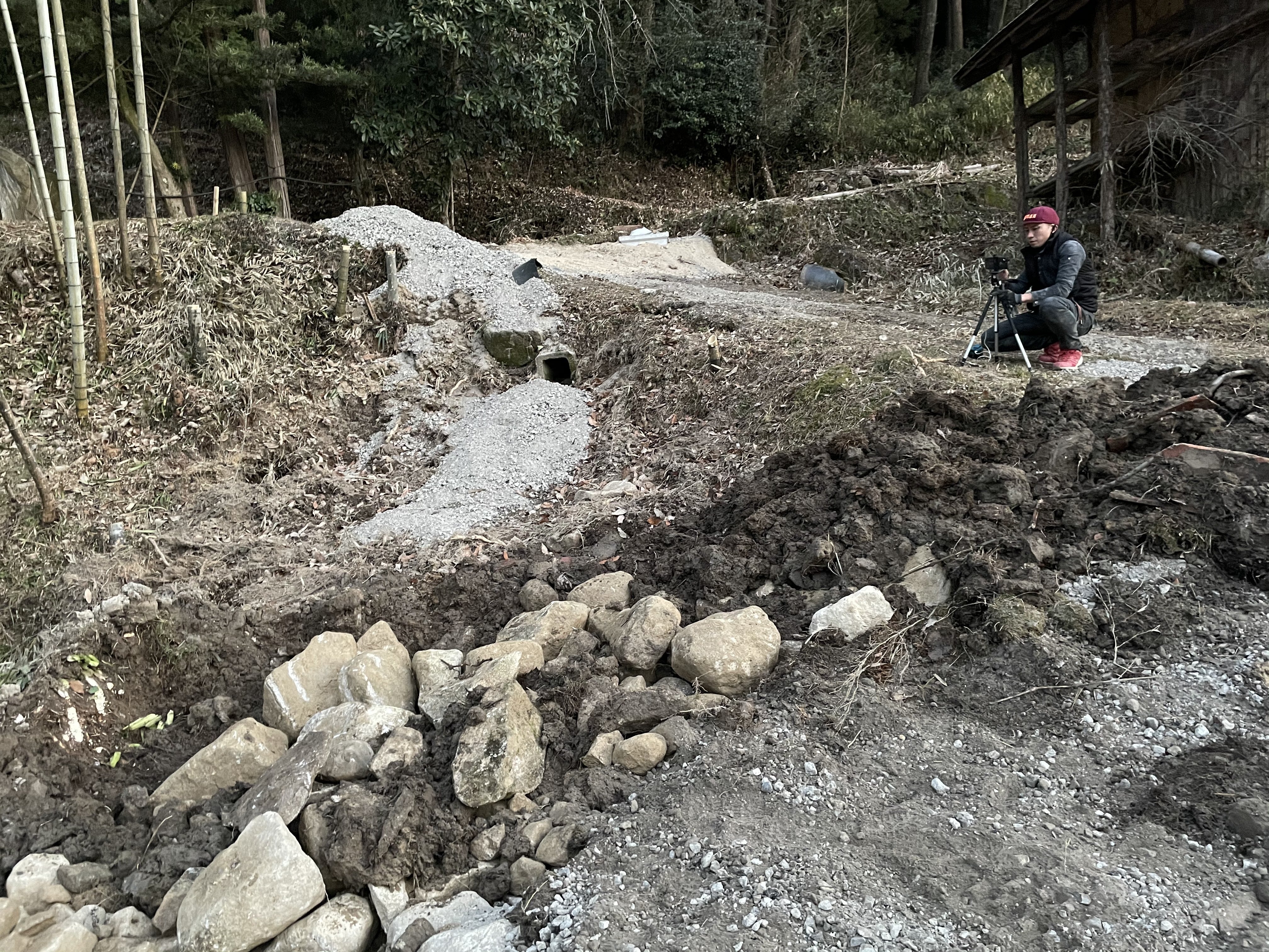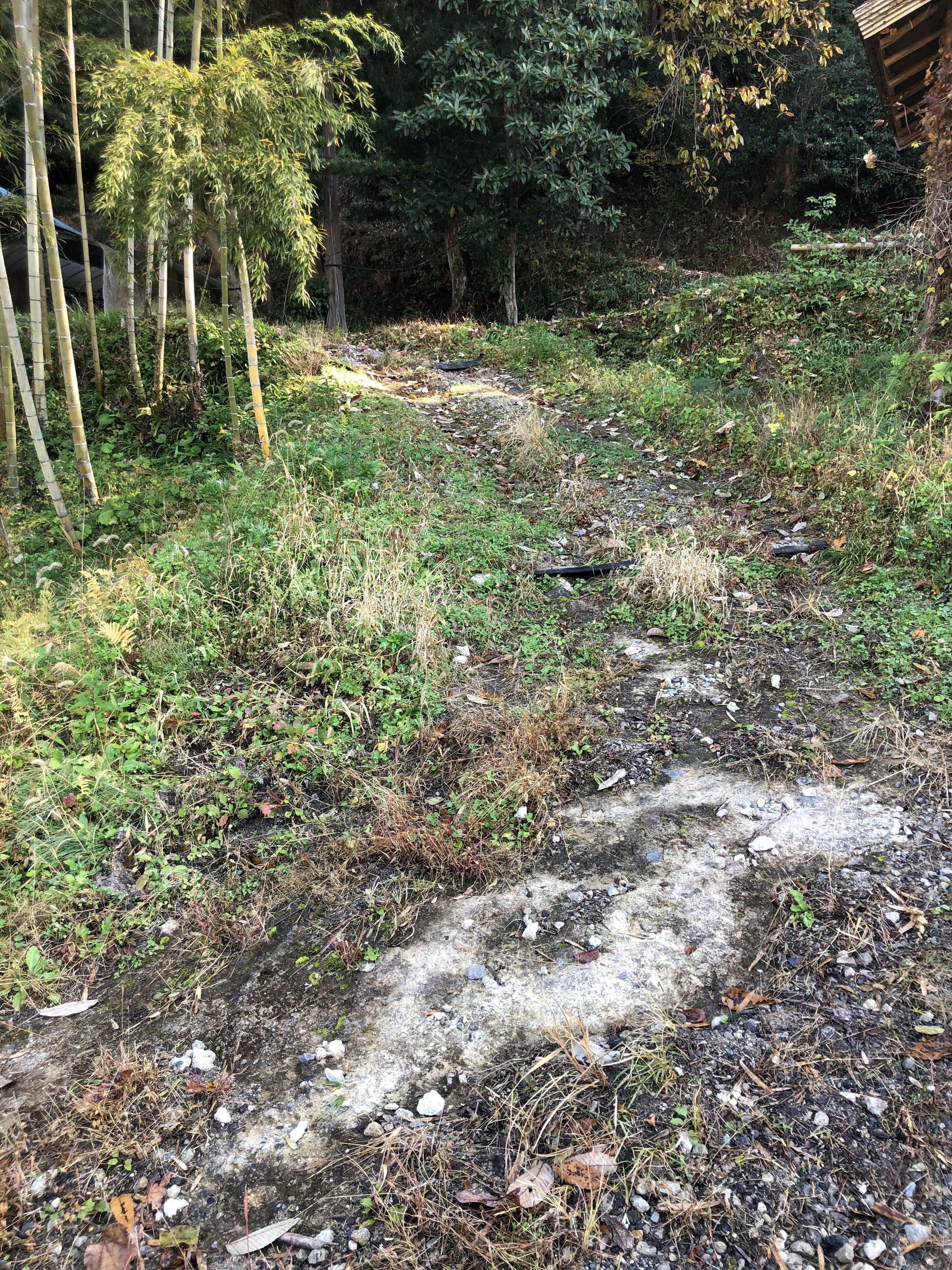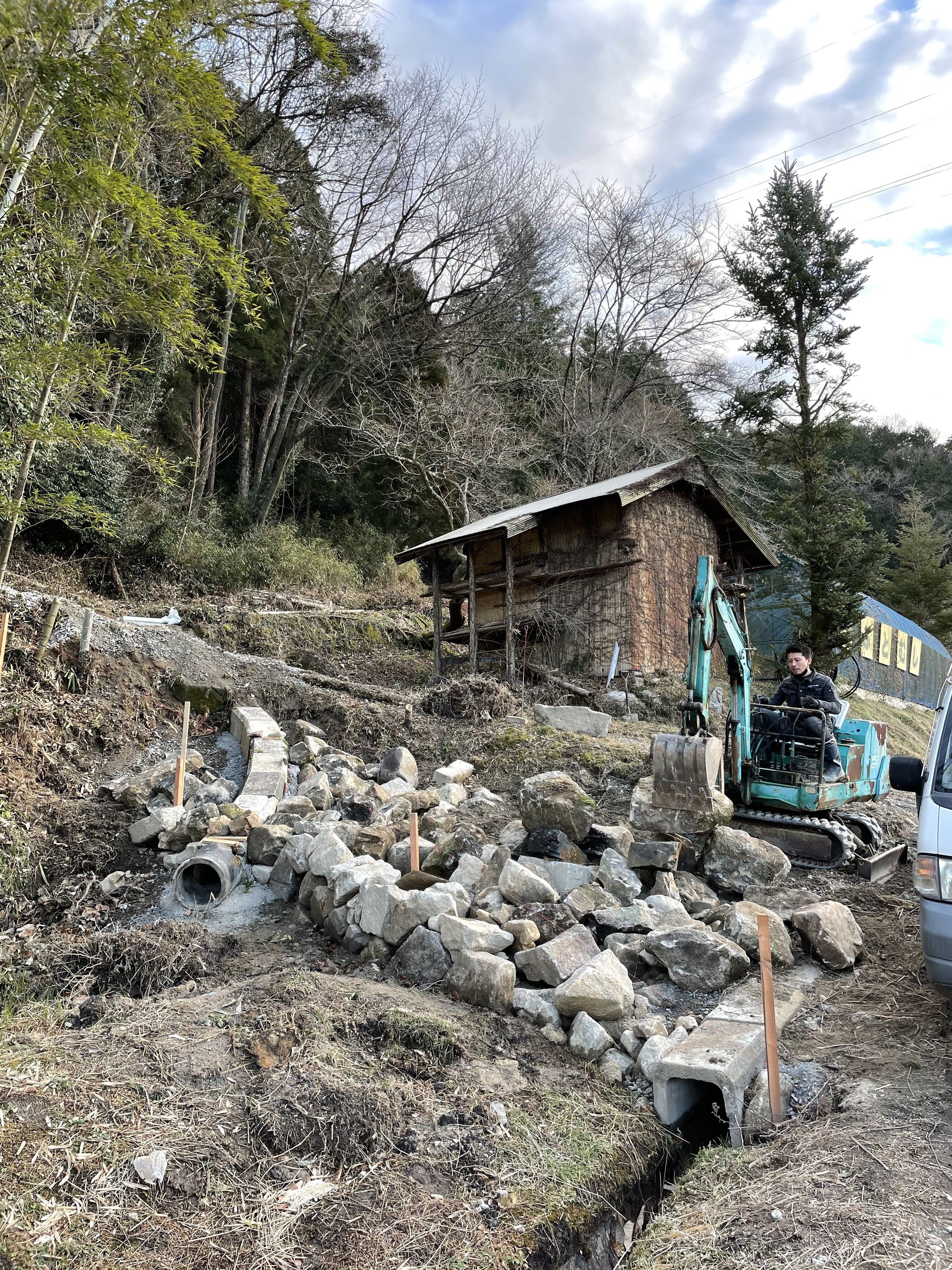 古民家再生の進捗としては、現在は、古民家への運搬経路が、急な道を緩やかな傾斜にする工事を仕事の隙間時間を見つけ少しずつ行なっております。