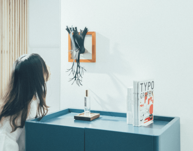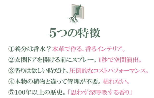 目線に近い高さに掛けることで、見た目の美しさと、香りで効果的に演出。