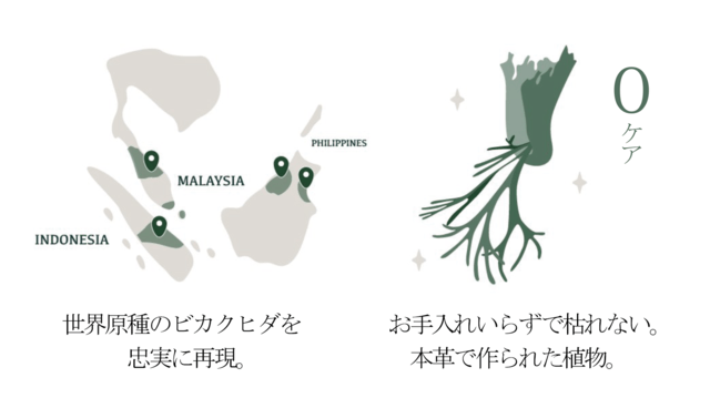 インテリア好きに人気の植物「ビカクシダ」を忠実に再現。