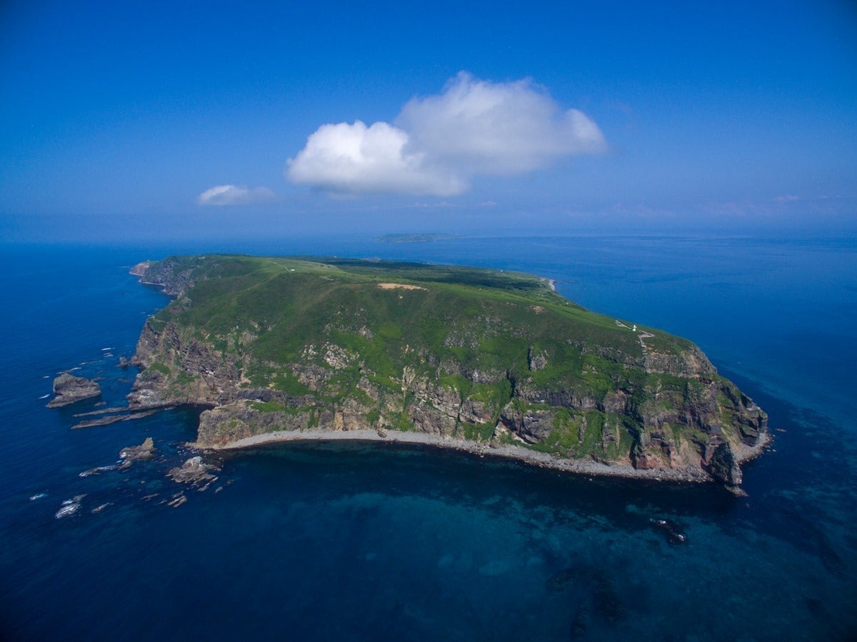 天売島の空撮写真。自転車に乗って2時間ほどで周回出来るほどの大きさ。