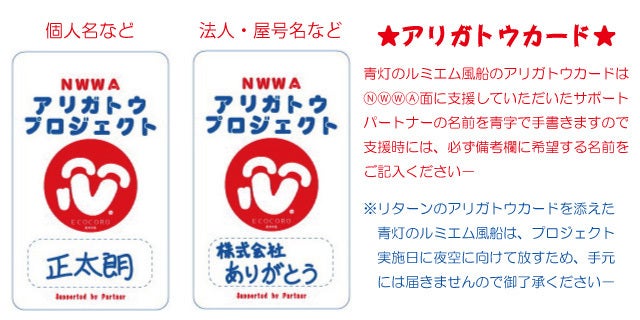 ※今回のクラウドファンディングは、NWWAアリガトウプロジェクト独自の活動です。