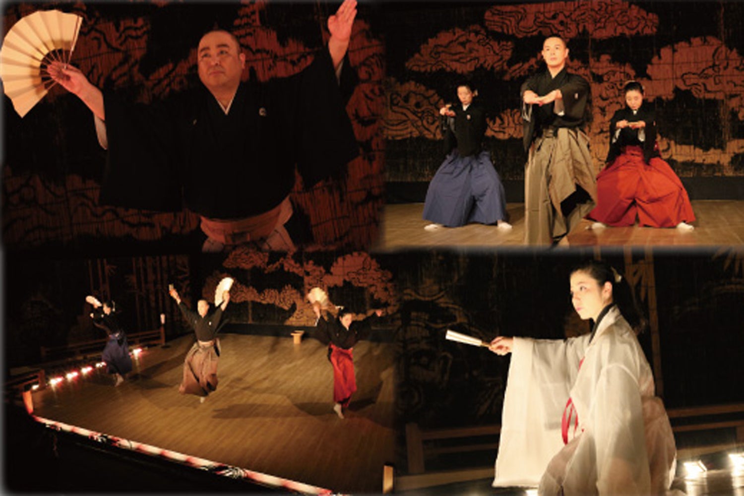 そこで私は、内容的にも金銭的にも「観やすい」、そして「古典ならではの色気の効いた」伝統芸能を目指し、今は亡き師匠の多大なる協力も得て、18年ほど前に東京の小劇場で「今昔舞踊劇」と銘打ち、公演を開催するようになりました。現在では、弟子とともに「東京幻堂」という舞踊劇団を立ち上げ、劇場はもとより寺社仏閣など歴史を感じることのできる空間で、亡き師匠が楽しみながら育ててくださった「今昔舞踊劇」の公演を凡そ20年近く継続しています。
