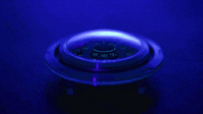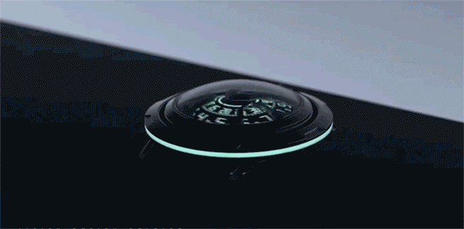 文字盤の回転により時刻を知らせる超個性的デザイン。回転する姿はまるでUFO!