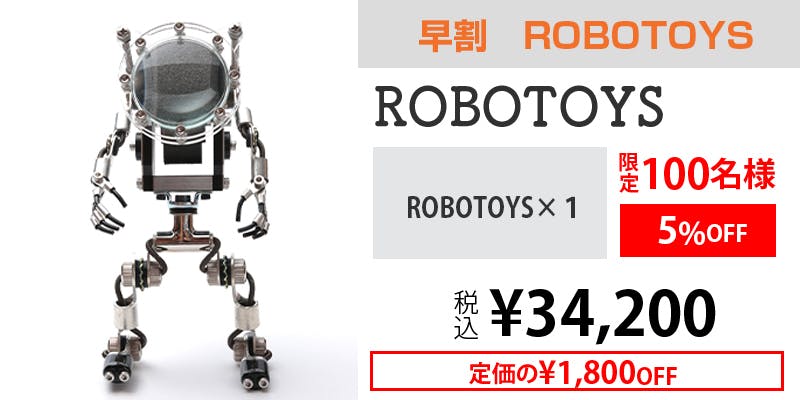 "未来からやってきた小さなロボット"が時刻を教えてくれる姿はまさに可愛らしいペットのような存在感!!2アイテムが織りなす神秘的な世界観をお楽しみください。