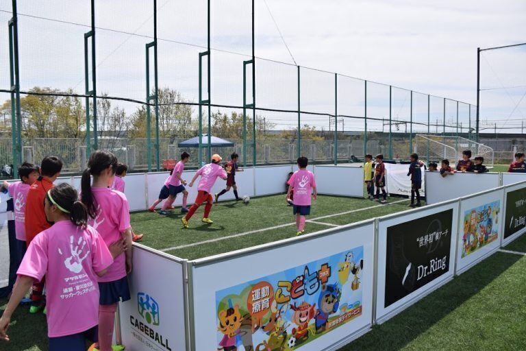 遊び場提供の一つに「ケージボールコート」を提案しております。 3対3の壁に囲まれたエリアでのバトル、細かなルールがなくストリートサッカーのように仲間を作れるアイテムです。