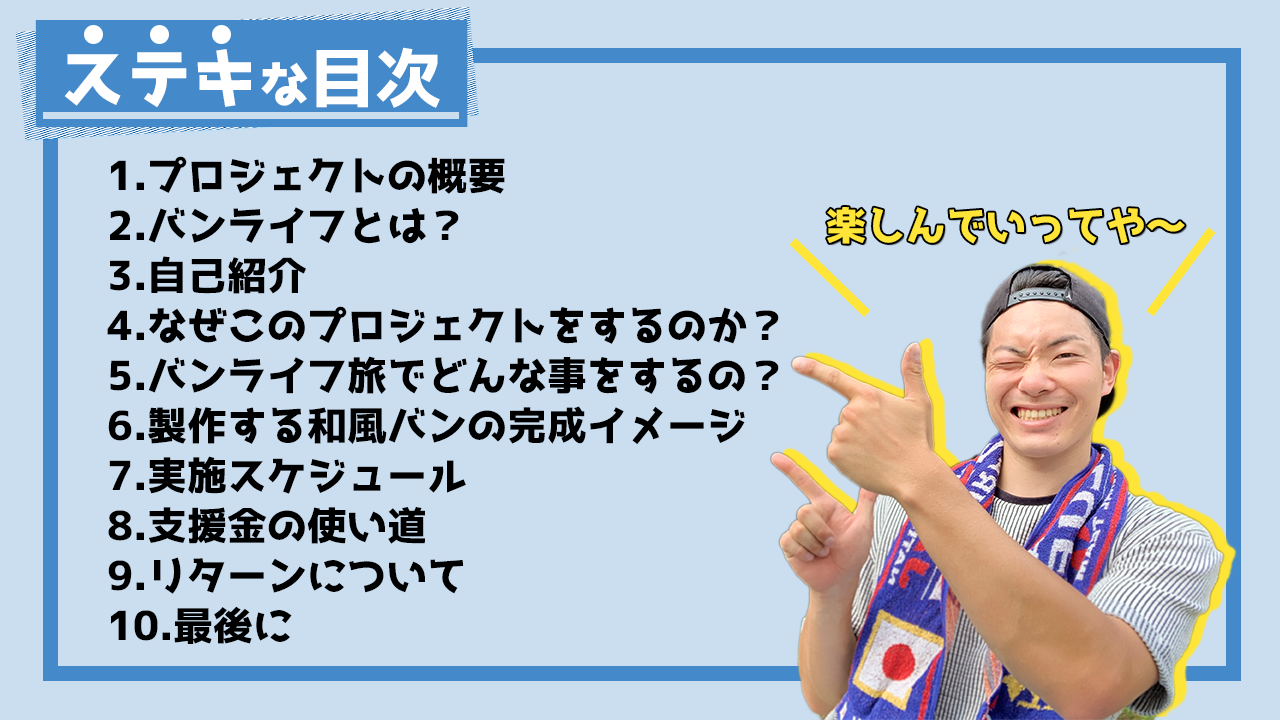 何か所かふざけ...ちょっとユニークに表現した部分もありましたが、僕はこのバンライフ企画もそうですが、このクラウドファンディングのページ自体も読んでいて楽しいページになればと思い、書かせていただきました。