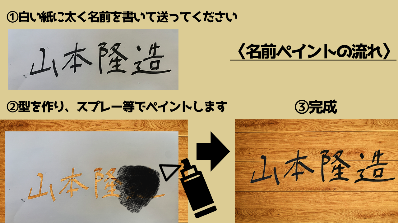 直接お会いできない方はこちらでペイントさせていただきますが、よりリアリティを出したいので、ペイントする名前を白い紙に書いていただき、写真を撮って送ってもらいます。