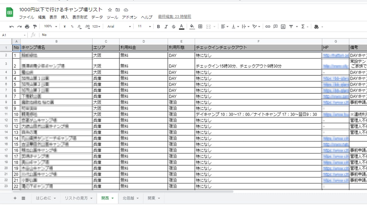 このリストにあるキャンプ場を中心に情報を共有する予定です。