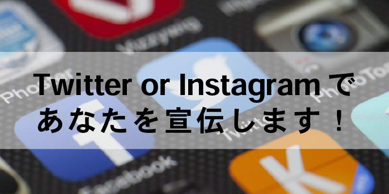 Twitterか、Instagram(1ツイートor1ストーリー投稿)を利用してあなたの宣伝してほしいことを発信します!