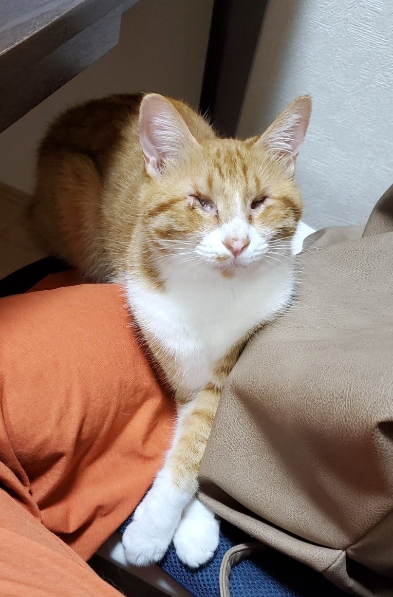 ナナミちゃんは、飼い主さんの家の近くで鳴いている所を保護されました。その時にはすでに、猫風邪で両目が萎縮している状態。そのまま全盲になりました。