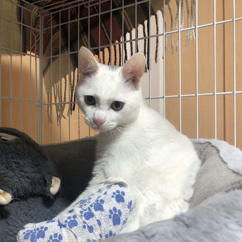 今日の紹介猫さんは、先天性心疾患、左後ろ足欠損の白い貴公子、「あた丸」君です。