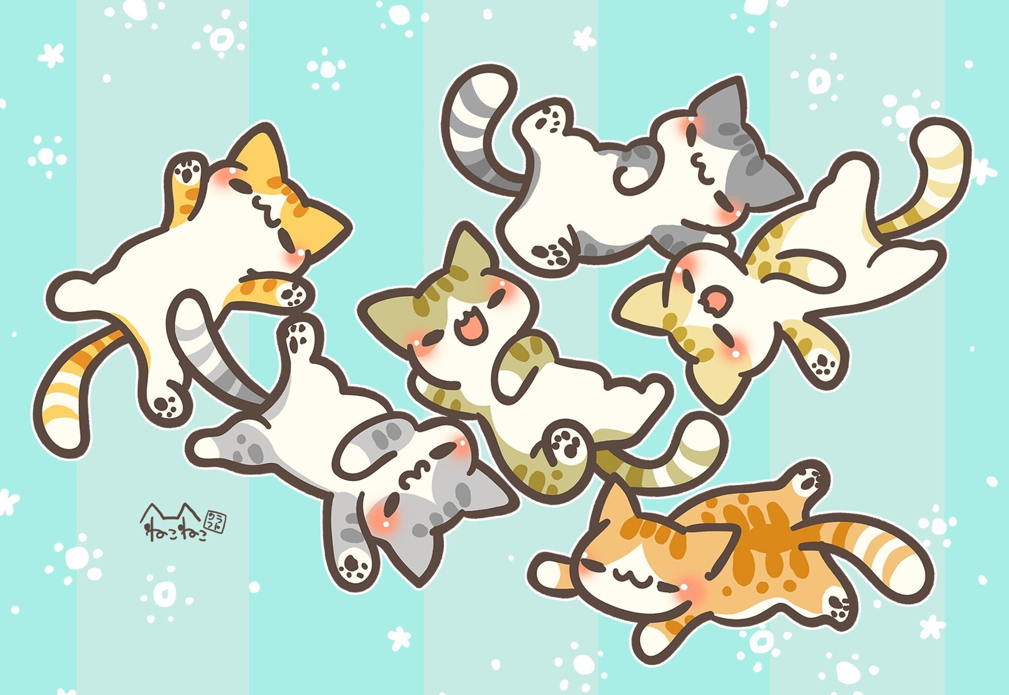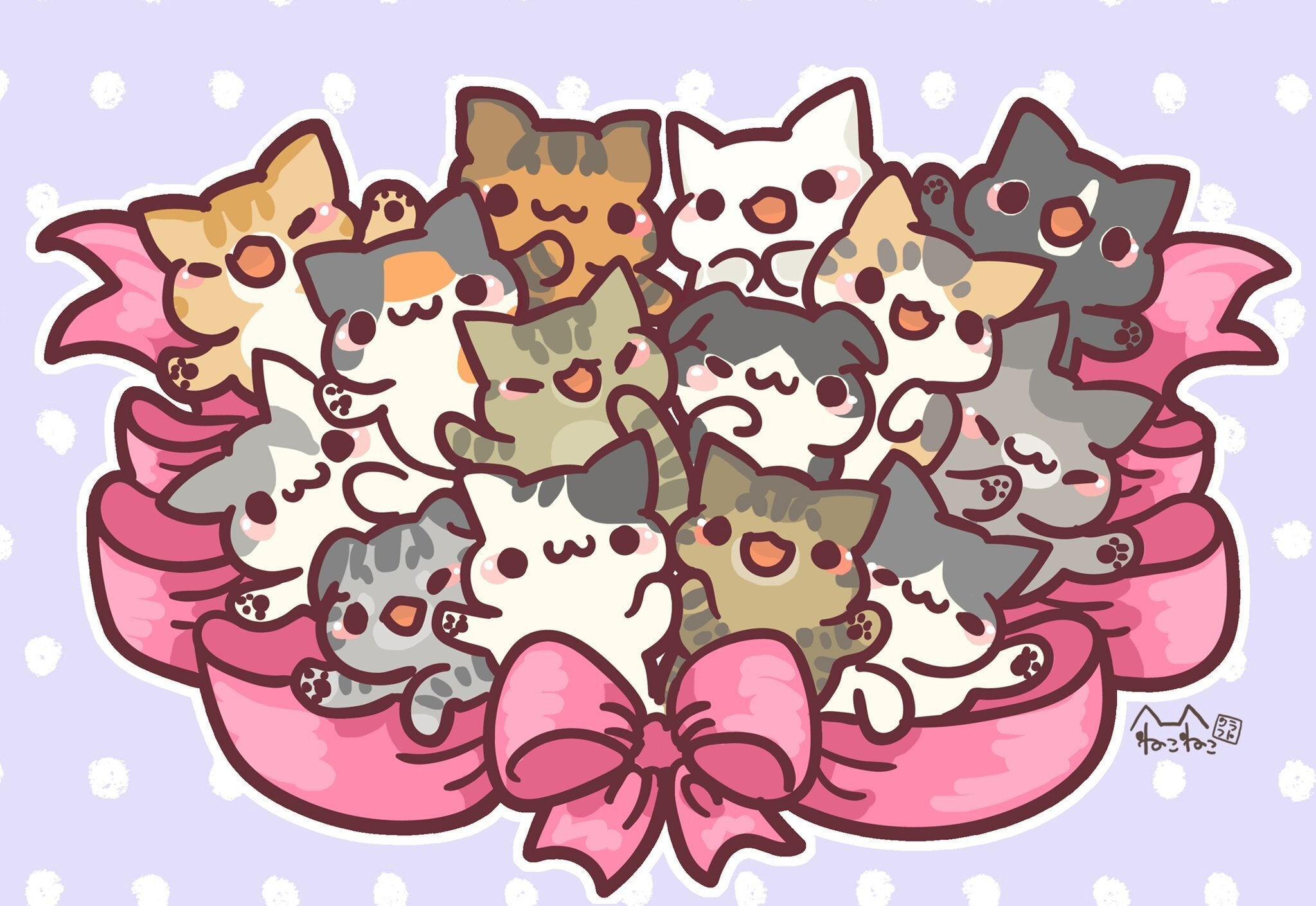 「ねこねこクラフト」さんです。上記のような可愛いイラストが33匹描いていただけることを承諾頂きました!写真展会場には、大きなキャンパス(F15号=65㎝×53㎝)に描かれ、飾られますので、お楽しみに!