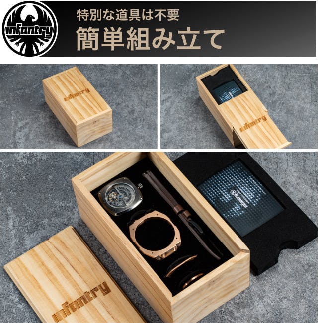 A:お客様のお手元に届く際は、各パーツが独立した状態で届きます。お客様ご自身で最後の組み立てをしていただきますので、より時計への愛着がわくイベントになるかと思います。