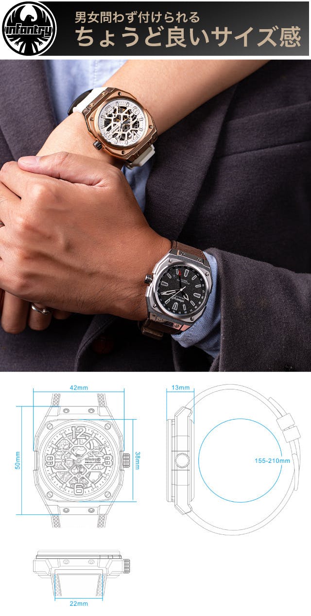 時計ケースの幅はメーカー調査で一番人気のサイズである42mmに合わせて作られました。ユニセックスサイズでカップルでもぴったりの時計です。