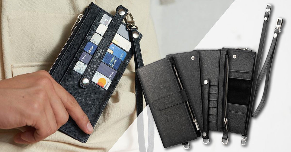 スマートフォン用財布と統合可能な中財布の場合、旅行中ずっと使用可能です。この組み合わせは普段手荷物が多い女性にオススメです。