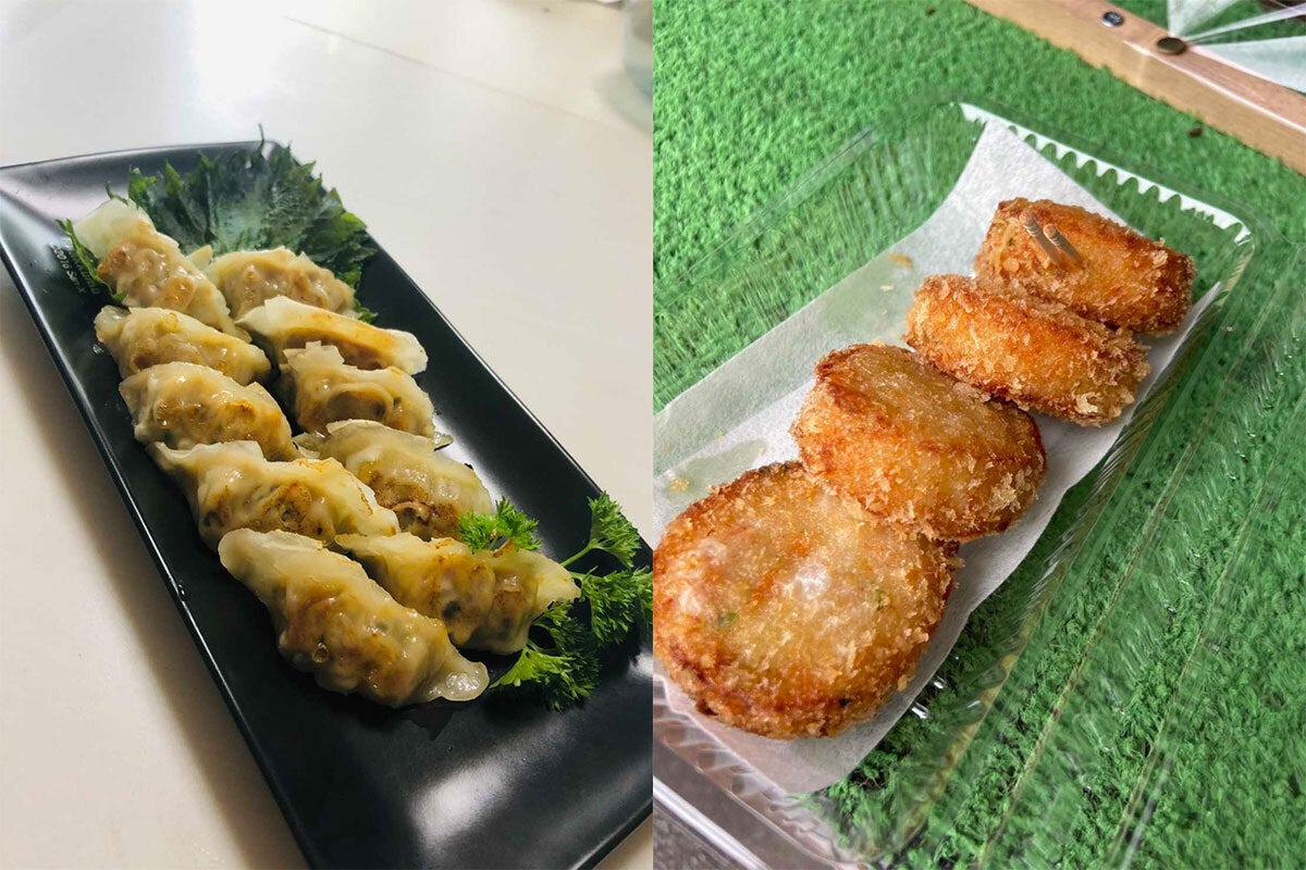 - 魚を使って作ったコロッケ→魚ロッケ(ギョロッケ)と、佐伯のブリを餡に使ったブリ餃子、そして旬の魚の干物をセットでお届けいたします。