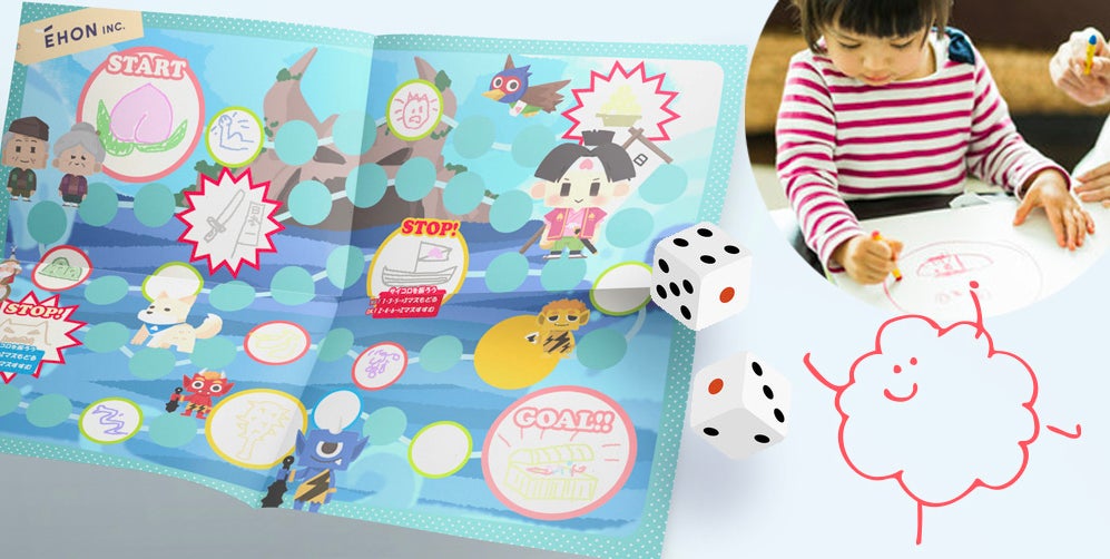 後日、みなさまから送っていただいた絵を繋ぎ合わせた「世界に一つだけのオリジナルすごろく」のデータを、ÉHON INC. からプレゼントいたします!