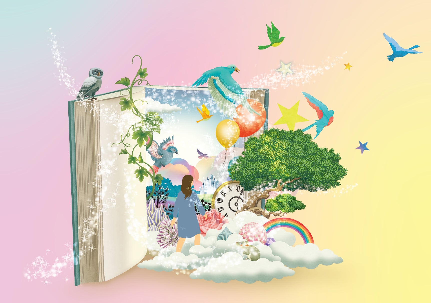 絵本のストーリーは、絵本の世界を体験できる不思議な図書館から始まります。絵本がずらりと並んでいて、どれにしようか迷っていると、主人公の子供はある1冊の絵本を手にします。そして気がつくと、自分がその絵本の主人公となって、大冒険をしていくというストーリーです。
