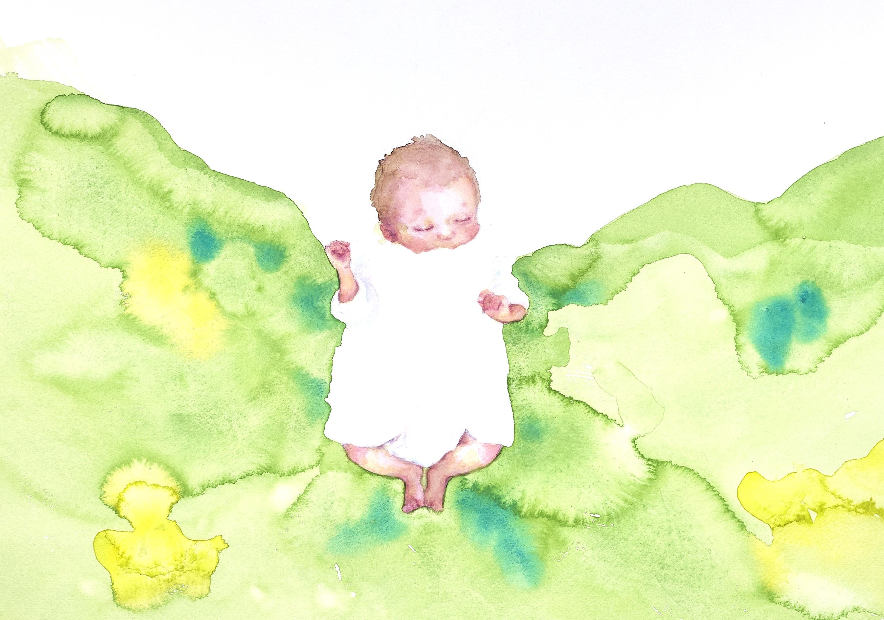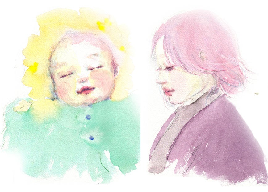 2018年に息子を出産し、子育て中に見つけたクスっと笑える瞬間や愛しいと感じた瞬間を残したいという気持ちから子どもたちの水彩画を描き始めました。
