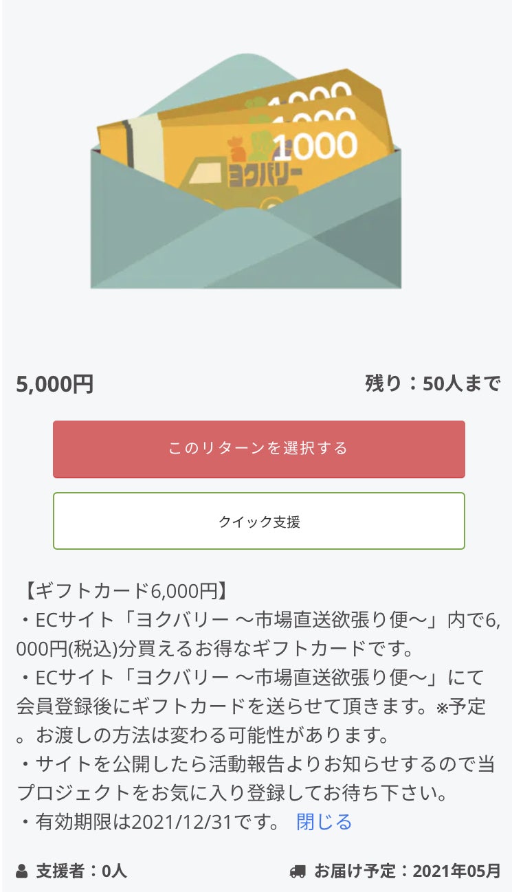 追加リターンに「ヨクバリー 〜市場直送欲張り便〜」で使用できるギフトカードを2種類ご用意しました。