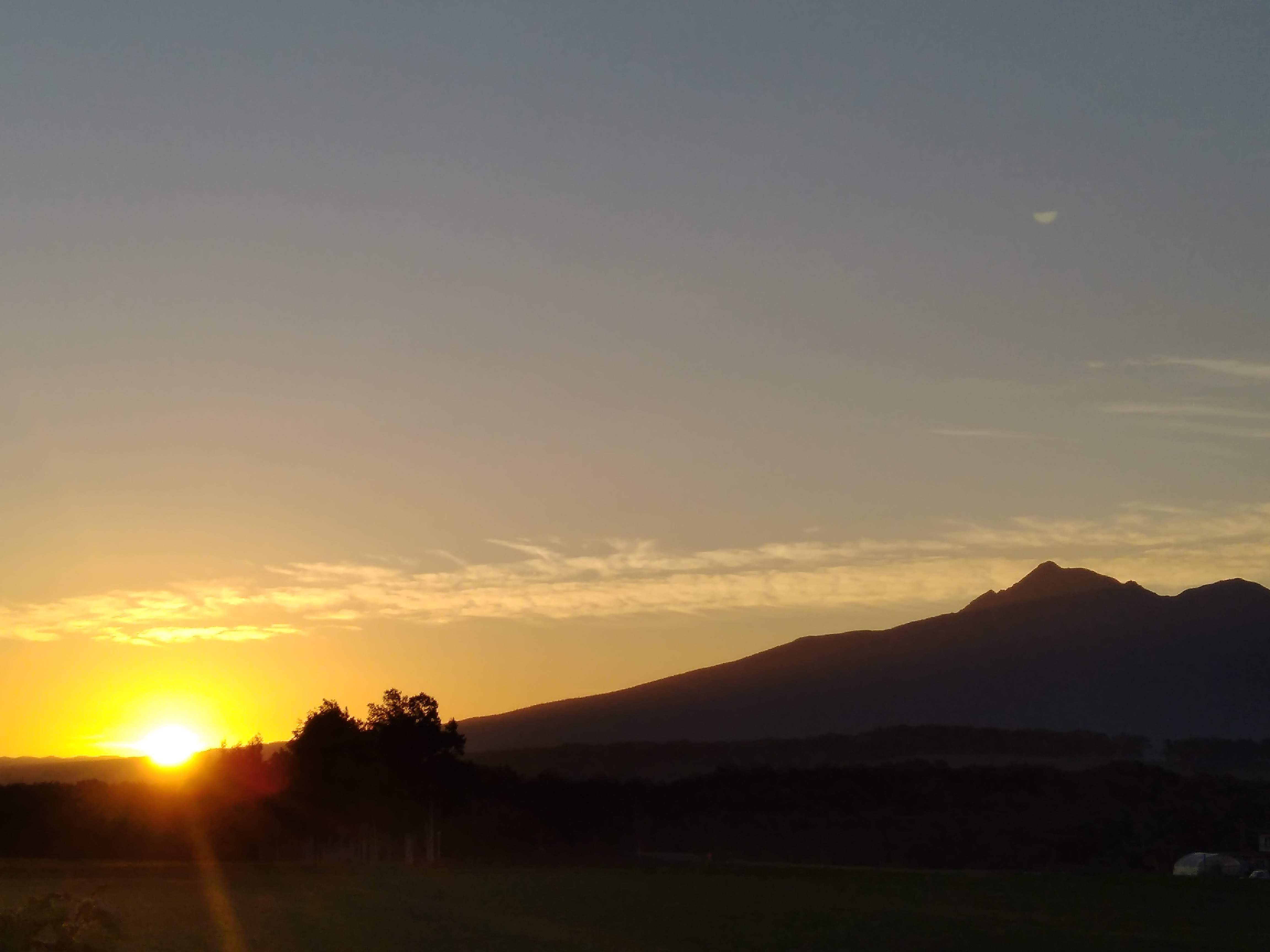 斜里岳を前にご来光