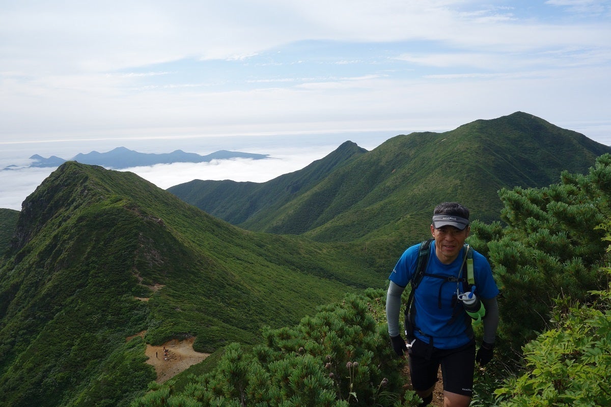 遊びに来てくれたトレイルラン仲間と斜里岳頂上直下にて
