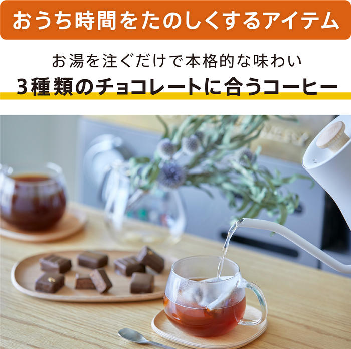 ご自宅での時間をよりたのしく過ごしていただけるよう、チョコレートを引き立たせるコーヒーをご用意しました。