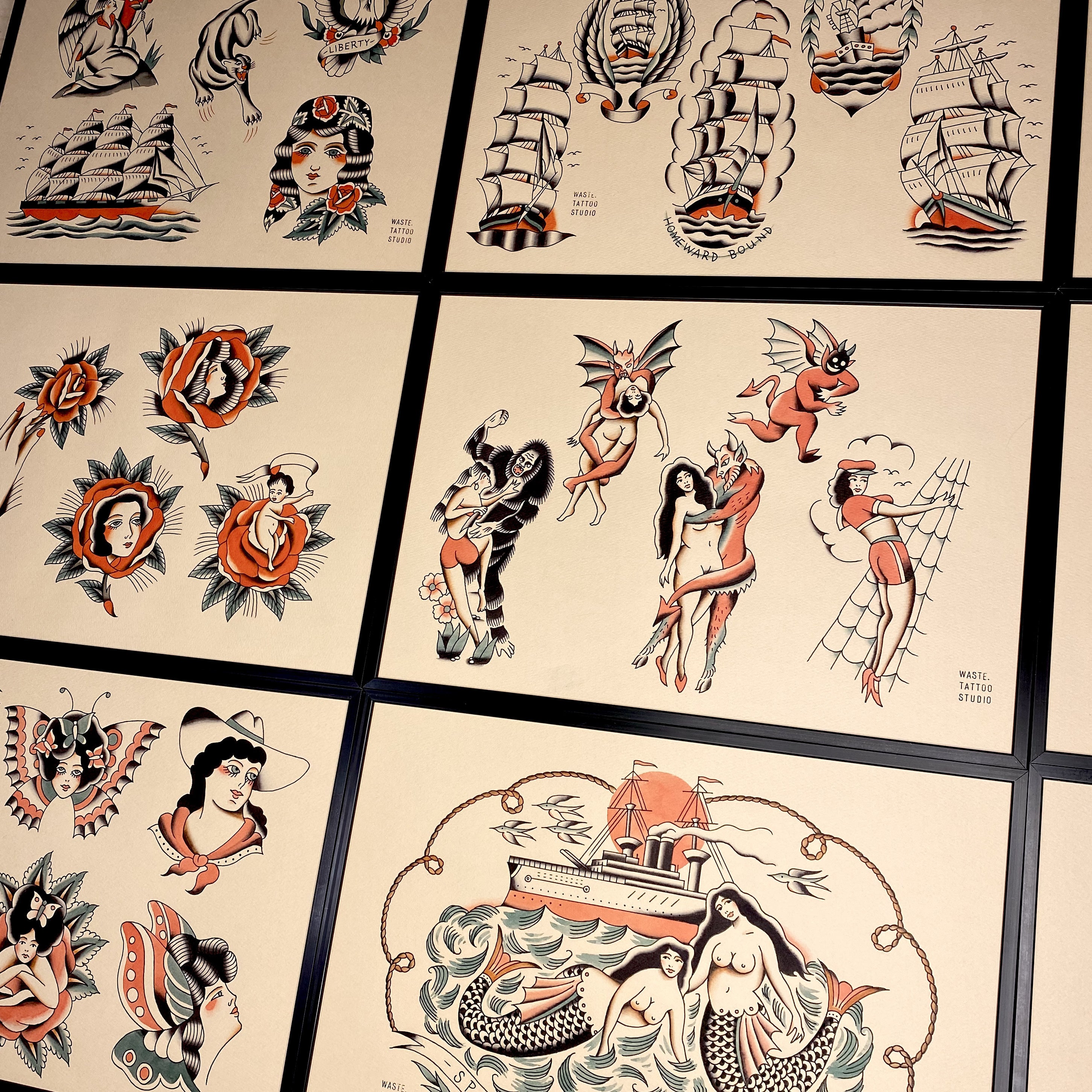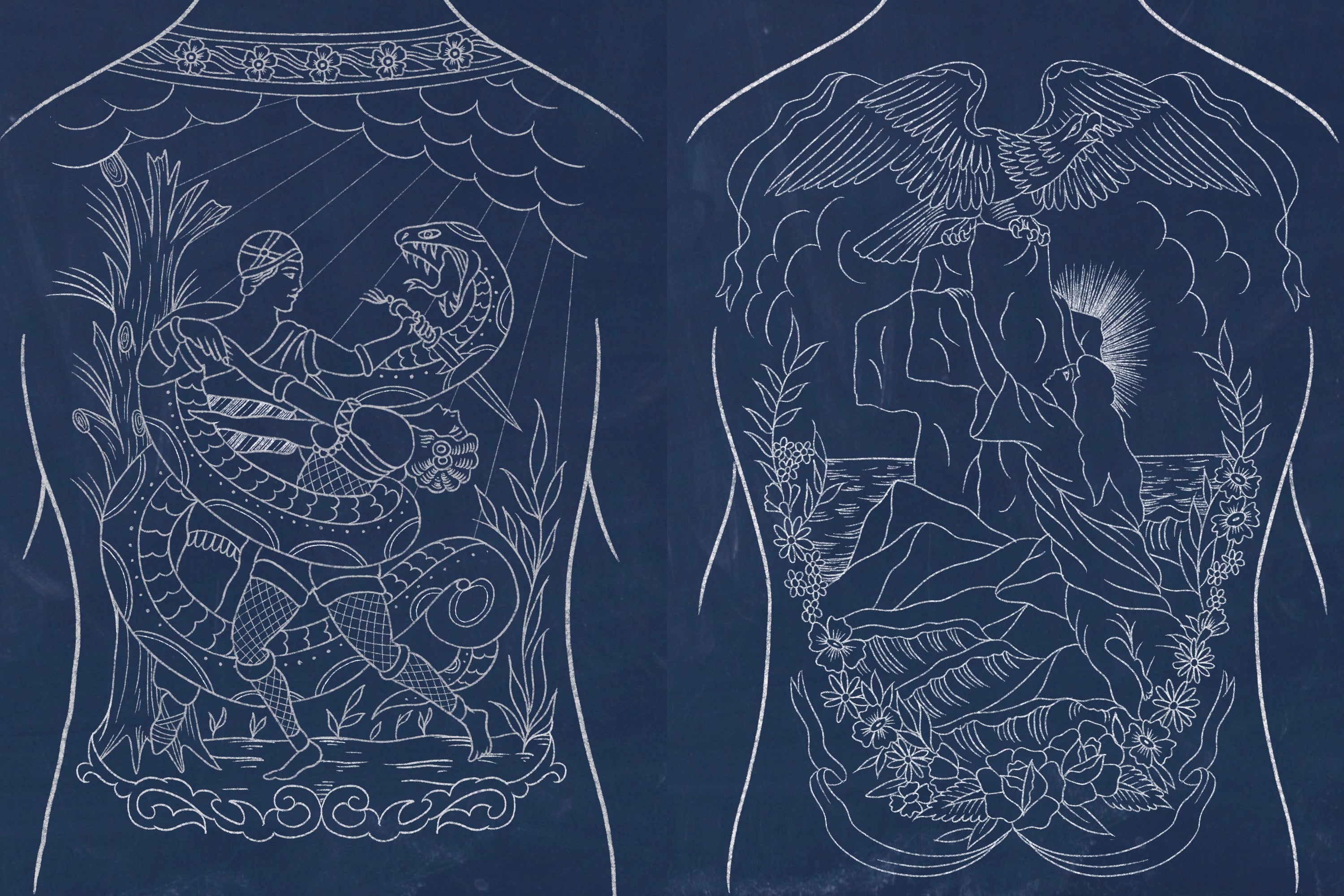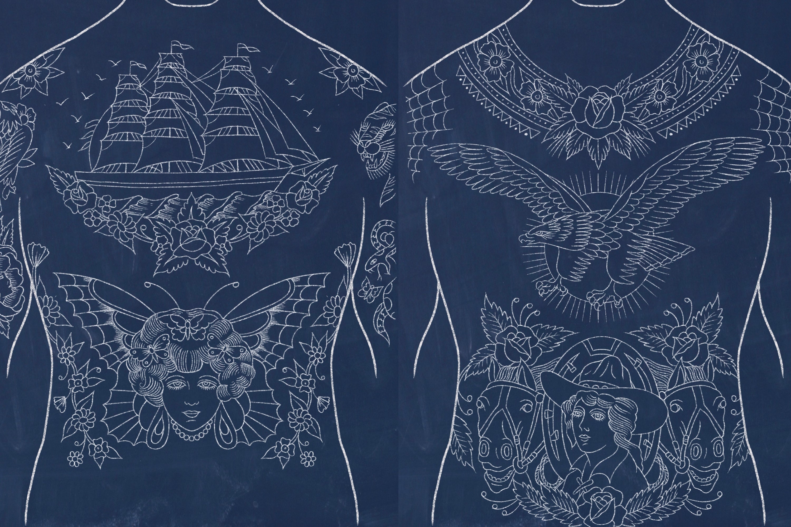 ノスタルジックなアメトラを、今にどう表現したら良いのか。ただ当時の写真や下絵をコピーすればうまくいくというものでもないんです。ヒントはヨーロッパのタトゥーシーンにあります。