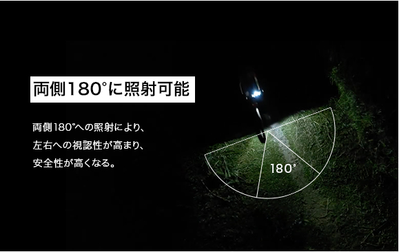 3.両側180°照射可能な為、視認性が高まり、安全性が高くなります。