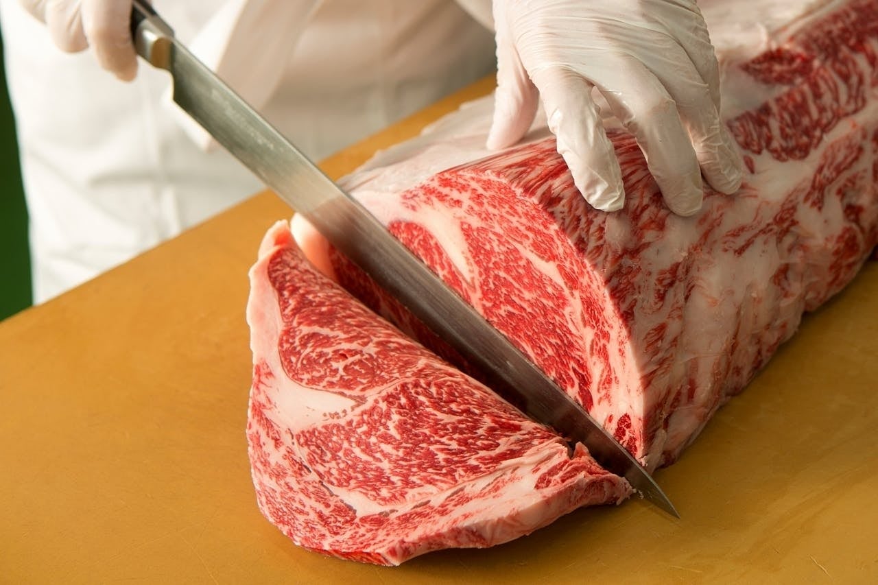 私たちが扱う肉は「十勝ハーブ牛」という私たちノベルズグループだけのオリジナルブランド牛です。品種は和牛とホルスタインをかけ合わせた交雑種で、その中からメス牛だけを長期飼養しています。飼養する期間は「32ヶ月以上」と、一般的な肉牛よりも半年ほど長く飼養するため、生きながらにして熟成肉のような強い旨味を持った肉に育つのが大きな特徴です。