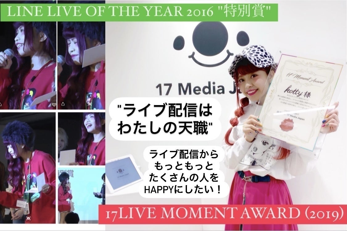 わたしは2016年よりライブ配信を始め、以降"ライブ配信が大好き"という真っ直ぐな気持ちで今日まで配信を続けて参りました。現在ライブ配信での活動をきっかけに自身がデザインしたオリジナルキャラクターのグッズを制作、自身のイベントの開催、ヘア商品のアンバサダーを勤めるなど、“kottyからhappyを”をコンセプトに『ライブ配信を世の中に広めたい!ライブ配信から夢を与えたい!』という信念のもと多岐に渡り活動を行っています。