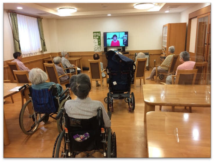 施設で配信を楽しんでくださっている様子