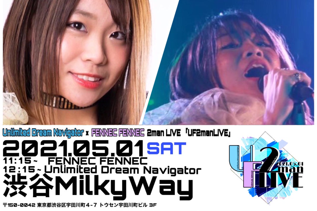 そんな私たちのバンド、Unlimited Dream NavigatorがFENNEC FENNECとオンラインツーマンライブ「UF2manLIVE」を渋谷Milky Wayにて開催します☆