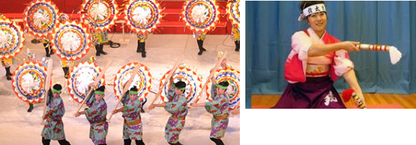 宮坂流銭太鼓というのが正式名で小道具として“銭太鼓”や“傘”、“すず心(すずこ)”を使い民謡や演歌などの音楽に合わせてオリジナルの振付をします。