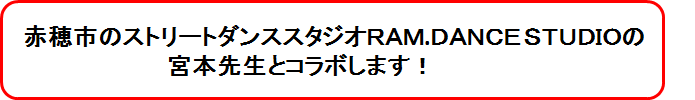 この企画を赤穂市でストリートダンスを教えているRAM.DANCE STUDIOの宮本ミキ先生にお話をすると私たちのプロジェクトに賛同いただくことが出来ました。