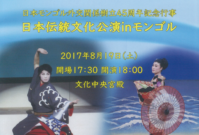 2017年には日本モンゴル外交関係樹立45周年を記念して、日本各地の郷土芸能を継承される皆さんといっしょに私たちもモンゴル公演に参加しました。